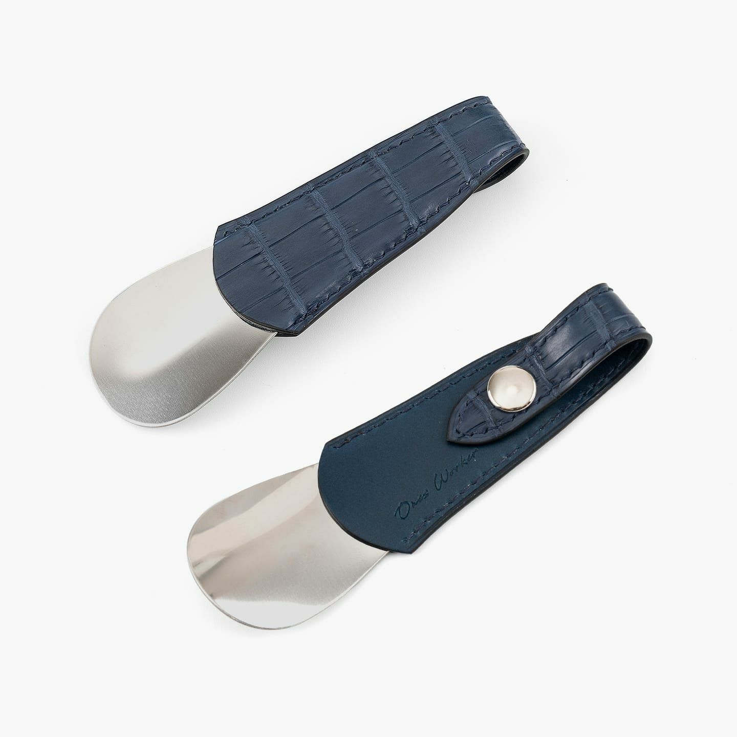 高度な職人技の少量生産にこだわり、皮革から金具まで最高の材料を使うことで、所有する歓びが感じられる作品へと導く、『ONES WORKER』のシューホーン。最高級マテリアルである皮革の宝石「クロコダイル ポロサス」の表革と、最高級ヌメ革「ブッテーロ」の裏革による、贅沢を尽くしたマテリアルの共演が、表裏を同系色で統一させた5色から、カラーオーダーできることも魅力。高級感あふれるアクセサリーのような佇まいと、アイテムとしての気軽さが、相反する独創性を高品位に纏いながら、比類なき上質感を醸し出させてくれる。