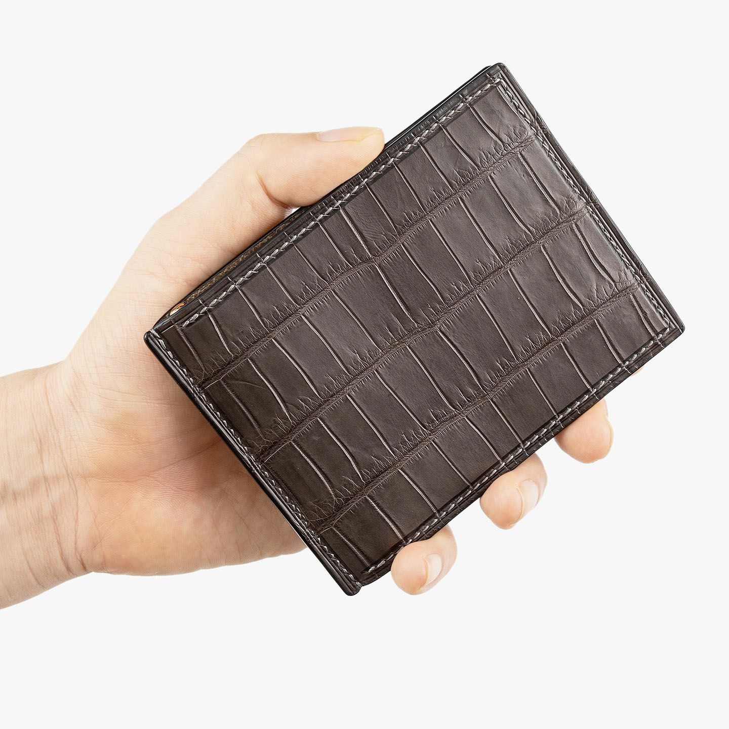 職人・大野椋平が、ステッチングの美学にこだわり抜きながら、手縫いでは珍しい逆目打ちを採用している『ohno lavoro in cuoio』。通常の目打ちのように、左撚りで作られた糸の撚りを戻すように縫い進めるのではなく、撚りをさらに締め上げるように縫い進める逆目打ちは、高い強度での糸ステッチの仕立てを可能にしています。また、強さを求められながら美しさも表現できるコバは、それらをより高品位に併せ持たせるために、匠の技と手間暇を注ぎ込んで平滑度を極めることで、美しい輝きと優れた耐久性を両立させる鏡面仕上げを実現。もっとも強度が優れている表面/銀面を、両面とも表になるようにしている裏張りは、薄いながらも高強度の仕立てへと昇華させ、見えない部分も表面にしている重厚感と高級感も備えています。ステッチ&コバとのバランスを重視しているネン入れは、しっかりと仕上げることでブランドとしてのプライドを醸成。さらに、全体の構造においては、各パーツが革の厚みを的確・緻密に調整しながら最適な役割を果たせるように設計することで、上質感あふれる感触の使い心地へと導いています。