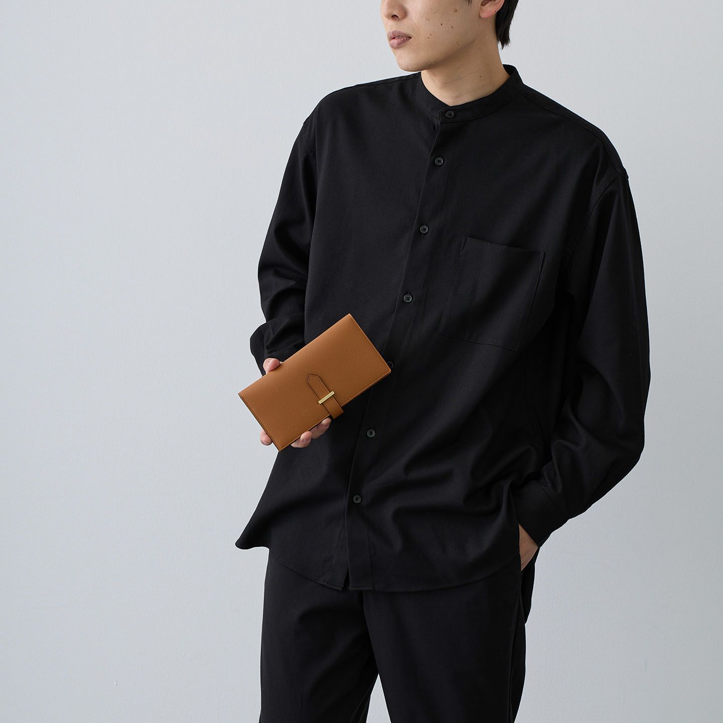 革製品の修理に携わっていた革職人・長谷川青矢が、自分でも使いたくなるような量産品では味わえない上質な革小物を製作している、ブランド『BRUSH』のロングウォレット。フランス語で「ベルト」を意味する“Santure”シリーズのアイテムで、その名の通りスリムな通しベルト&金具によるエレガントなアイコニックが魅力的で、フランス・アース社製の「ダービー」によるマットな型押しの美しい表情との高級感あふれる調和が、大人の感性と所有欲を刺激。ヨーロッパの有名老舗メゾンでも採用されているほどの、しっかりとしたハリ感と手にした瞬間に感じられる革質の極上感が、スタイリッシュなデザインとともに、日常使いの気分を上げてくれる。