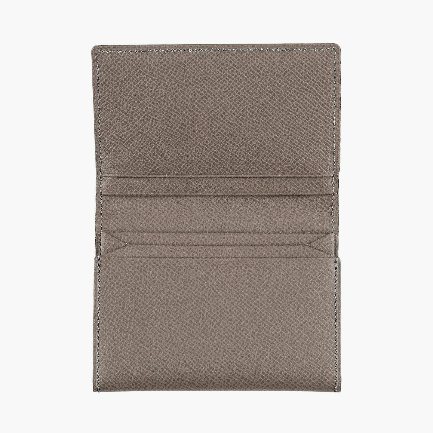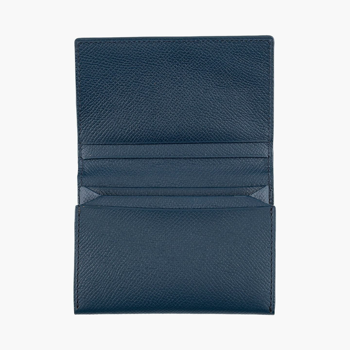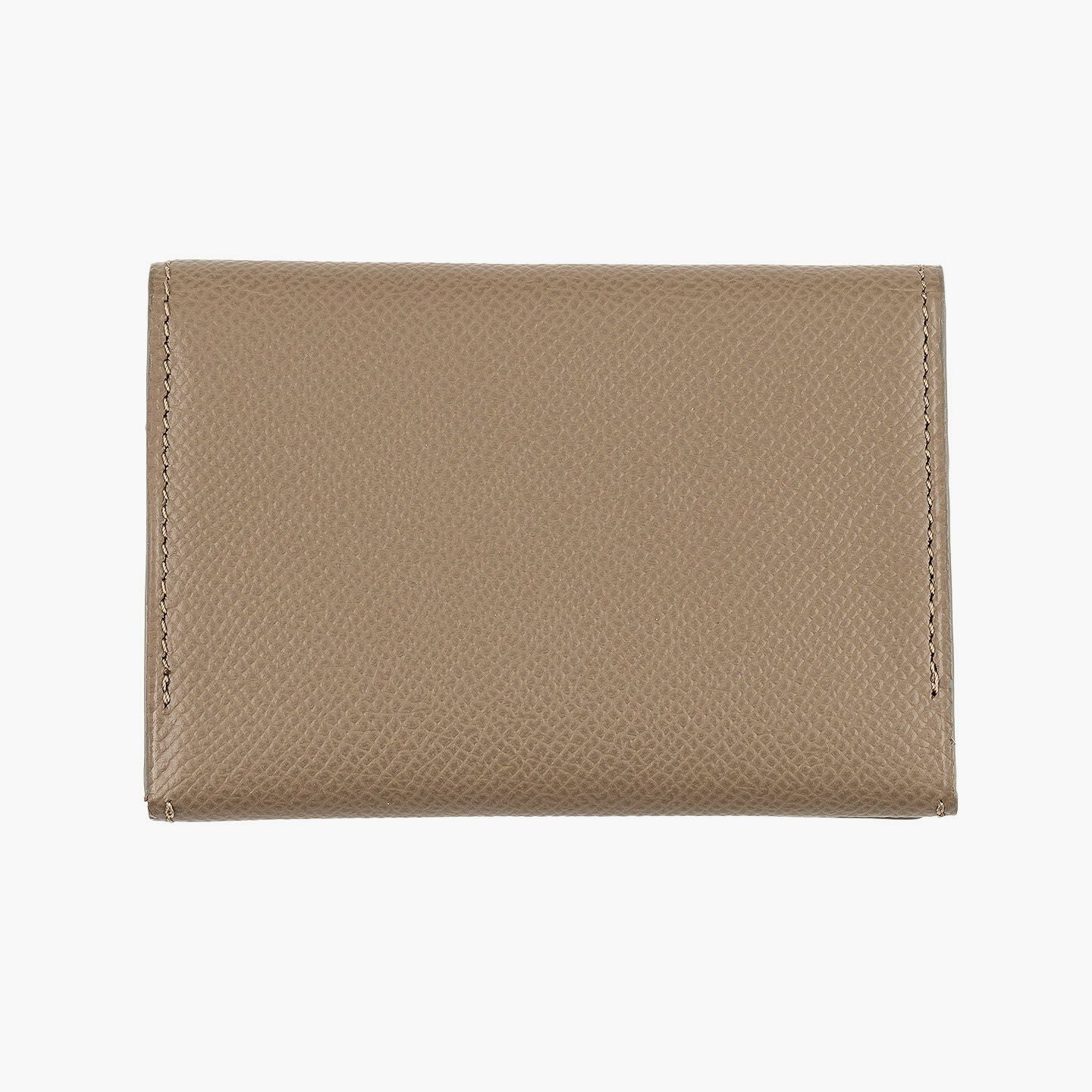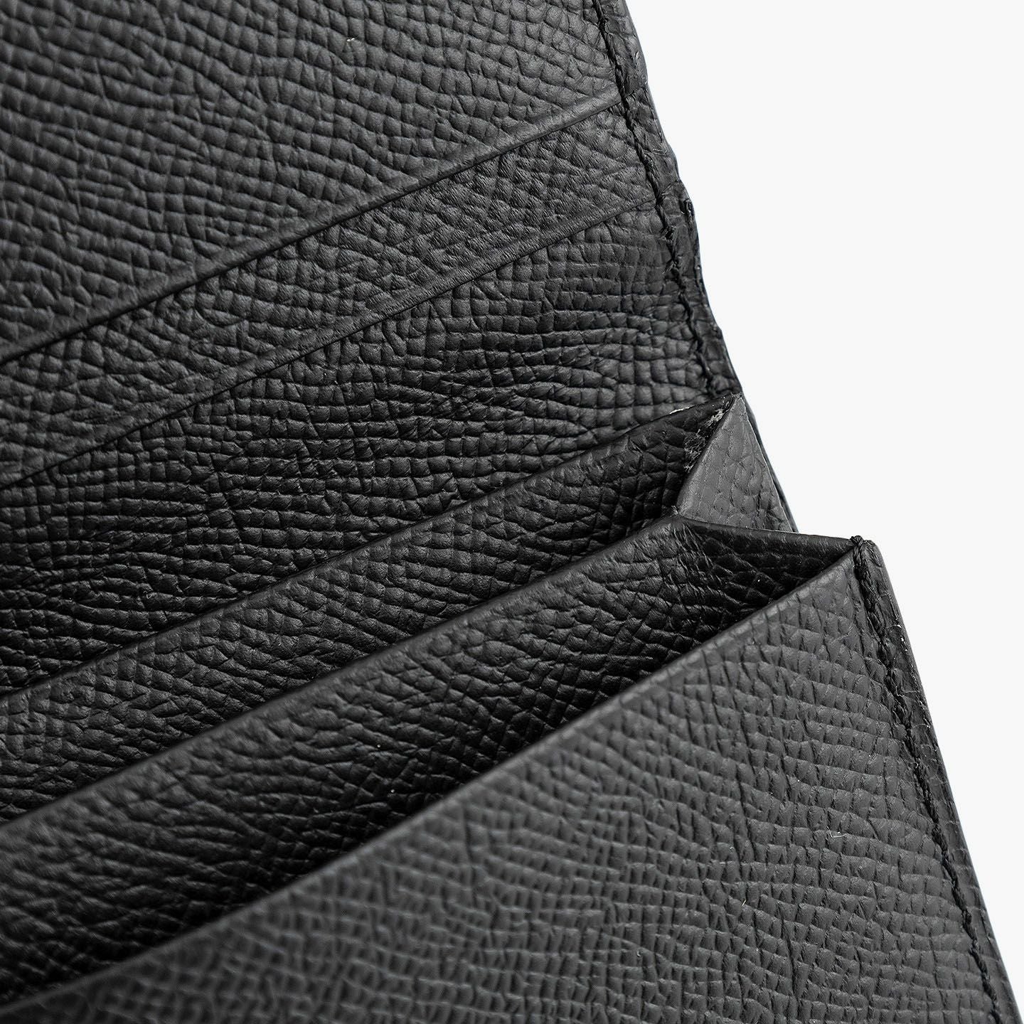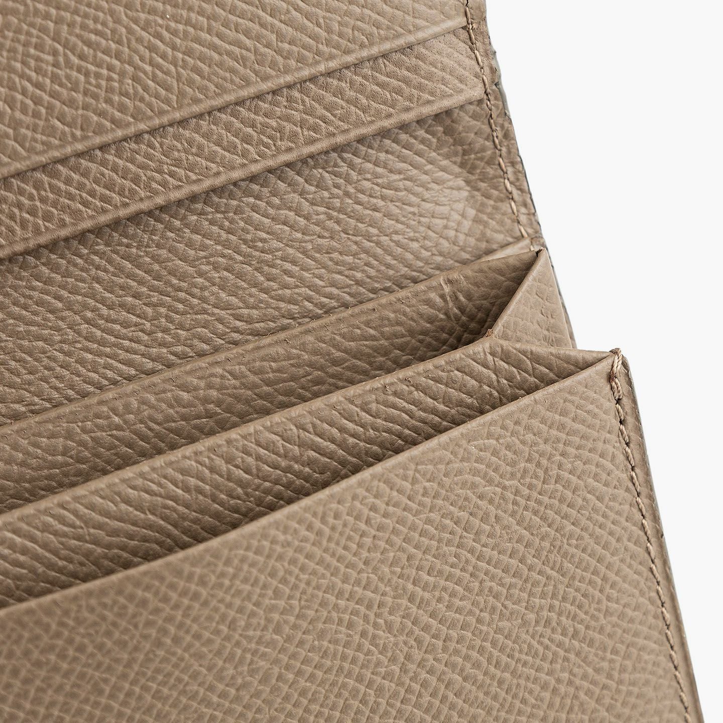 日本独特の高度な伝統技法である風琴マチを、2つ重ねた山型(シェブロン)のデザインが、アイテムの象徴になっているシェブロンカードケース。シンプルな装いの外装とエレガントな佇まいの内装には、小石模様の陰影を想わせる細かな型押しが施された、フランス・アース社製の「ダービー」を採用。ヨーロッパの有名老舗メゾンにも人気がある素材で、マットな表情でハリ感もあり、小キズ・汚れが目立ちにくく水分に強いのも魅力。名刺の端が折れる心配のない、アコーディオンの蛇腹のような独特の意匠と、美しい発色が醸し出す上質な高級感が、ひとつ上の大人のアイテムとして、ビジネスシーンなどをハイセンスに彩ってくれる。