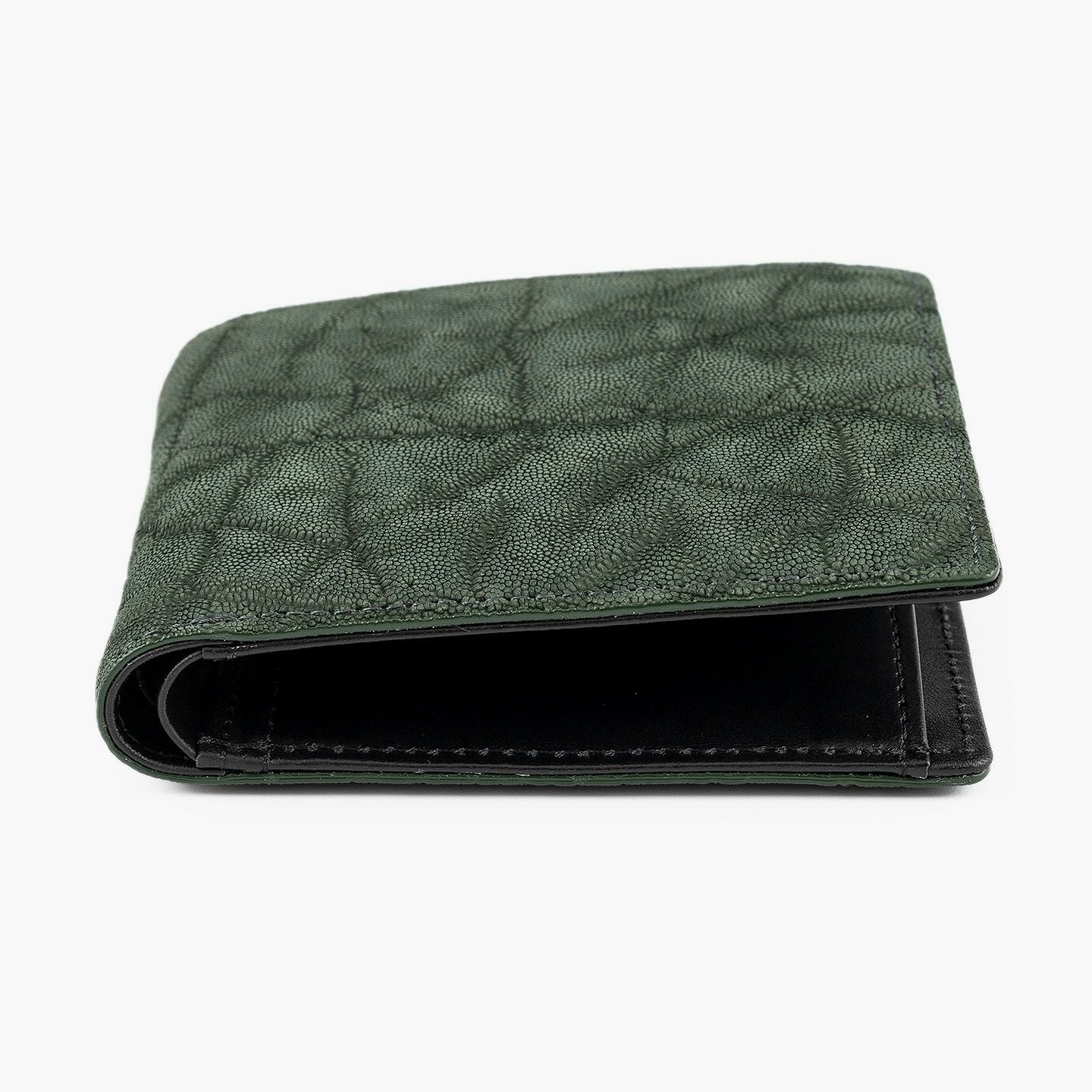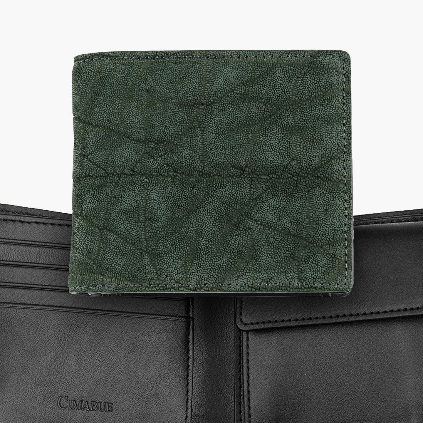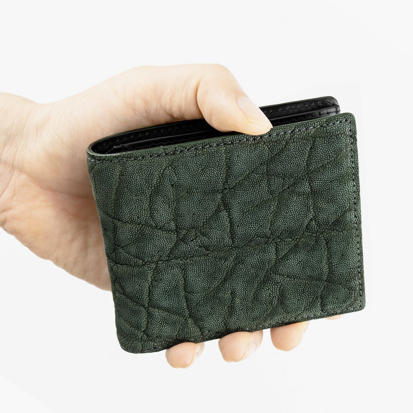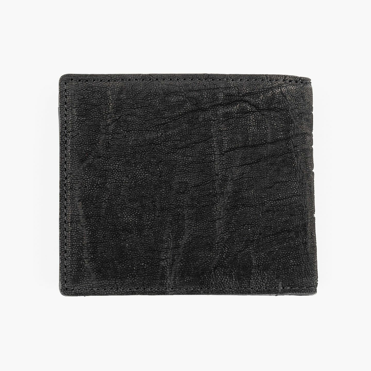 厳格な条件のもと国際取引が認められている、ジンバブエに生息するアフリカゾウの鼻・喉の部分のみを使用した、とても希少な「エレファントレザー」。エキゾチックレザーのひとつでもあるゾウ革は、非常に丈夫であるとともに、キズに対する耐性や撥水性に優れ、厚みがありながらも柔軟性にも富んでいます。また、表面には、細かい粒状の凹凸が広がっていて、部位により不規則なシワが入った表情が、惹きつけられる魅力にもなっています。さらに、ゾウ革においては、表皮を擦り取って起毛させた、ヌバック調に仕立てているのが一般的。細かい粒状隆起や大ぶりなシボ・トラ(スジ状のシワ)などが、複雑に絡み合って織り成すワイルドな風合いも特長的です。そして、それらの表情は、不規則なので同じように見えるものがなく、オンリーワンの個性を創出。使い込むほどにツヤ・色味が増していく、魅力的なエイジングも楽しめます。