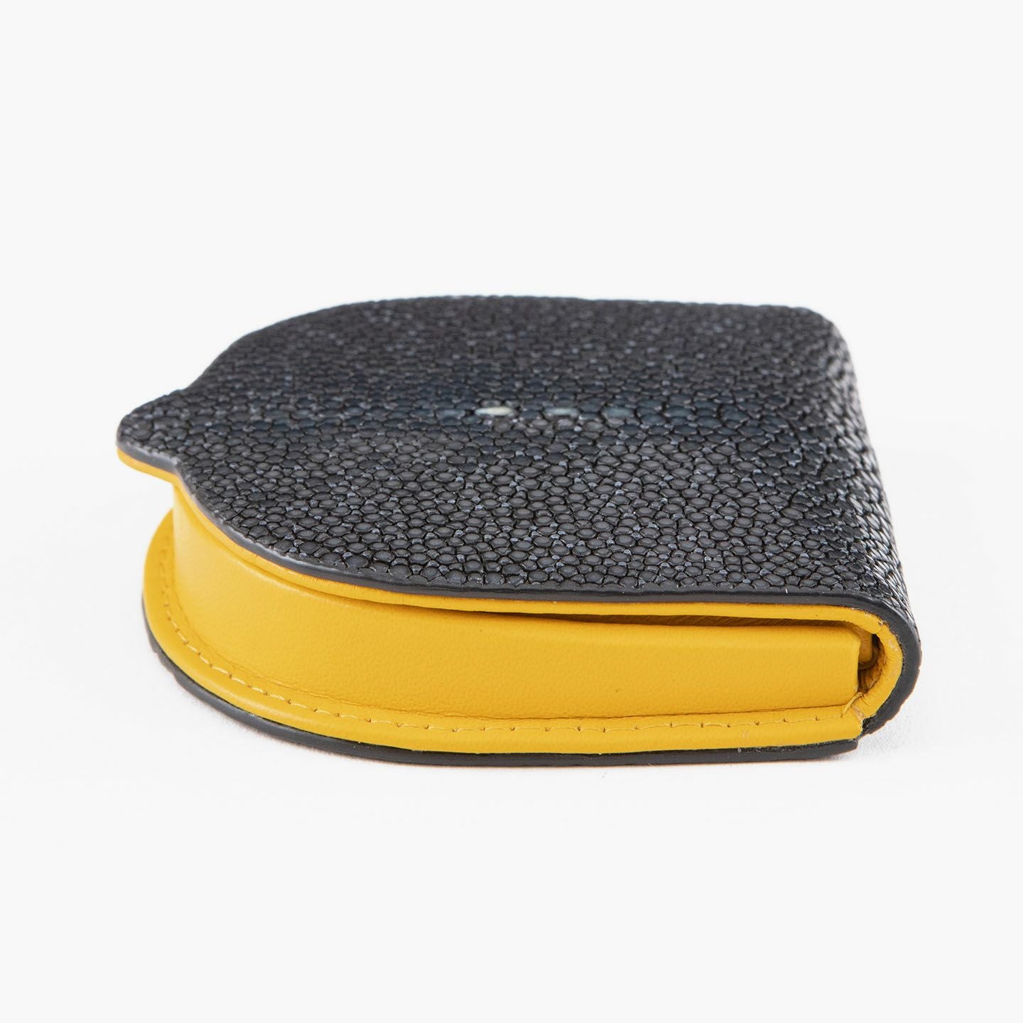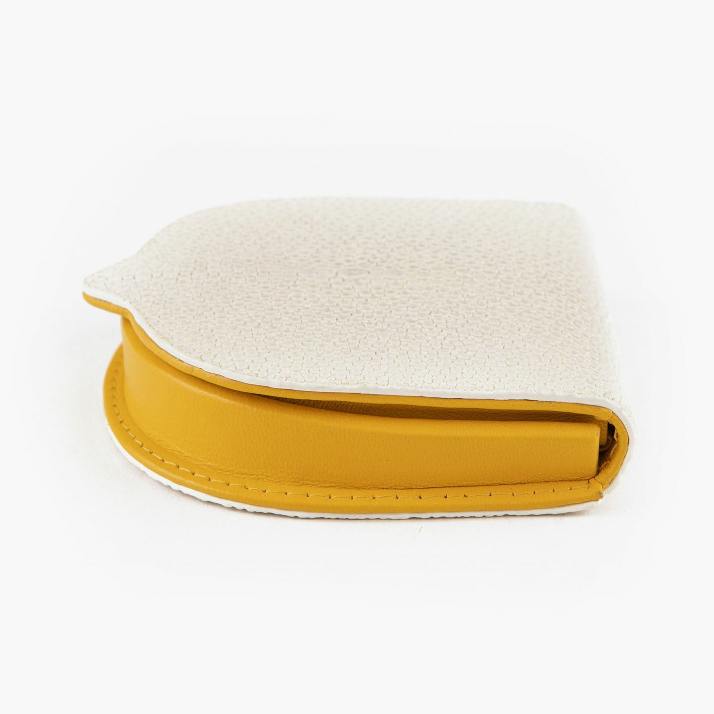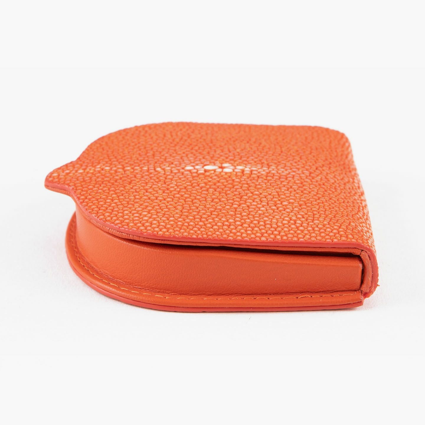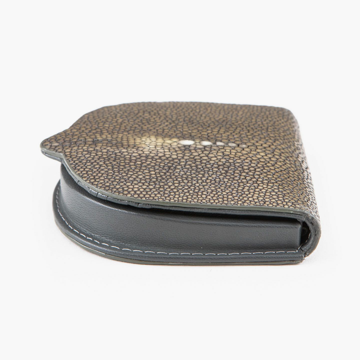 他とは違う美学のブランドとして、「いつも一緒に人生の旅の時間を刻んでいく革製品でありたい」という想いを込めている、『Atelier AKNAS』の馬蹄型コインケース。馬蹄のようなフォルムの個性的なスタイリッシュさと、コインポケット1つ・マルチポケット1つ(カブセ裏)のみを備えた構造のシンプルさによる、ひとつ上のセンスを醸すアンビバレントな融合が独創的。小さい鱗が高級感を漂わせるエイ革「ガルーシャ」と、鮮やかなカラーで上質なイタリア産「山羊革」が、異素材ならではの存在感を互いに主張しながら、古来より“ラッキーフィッシュ(幸福の魚)”と呼ばれている縁起が良さも、大人の幸福感を満たしてくれる。