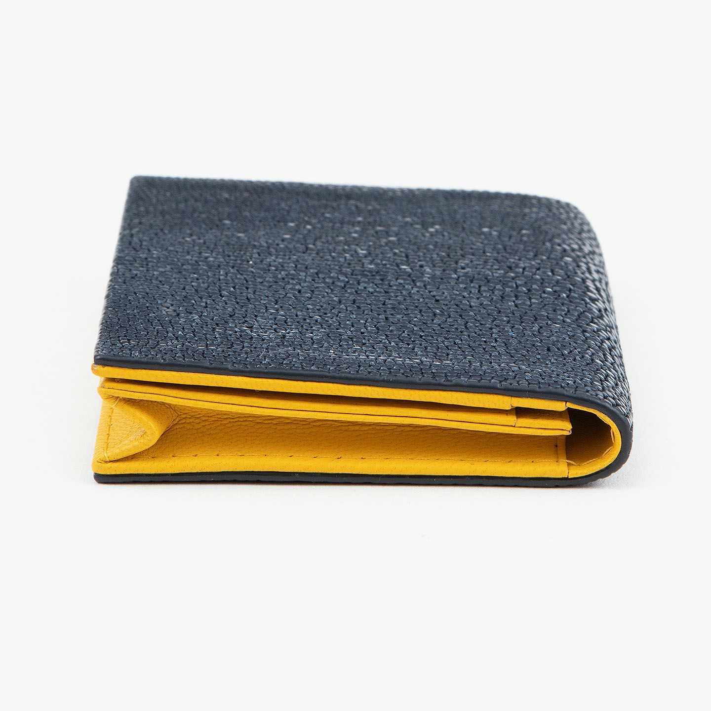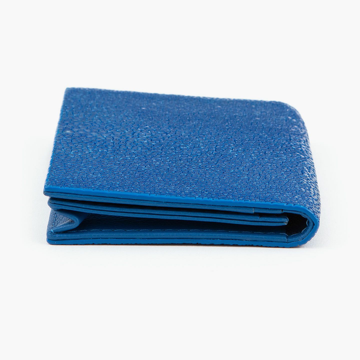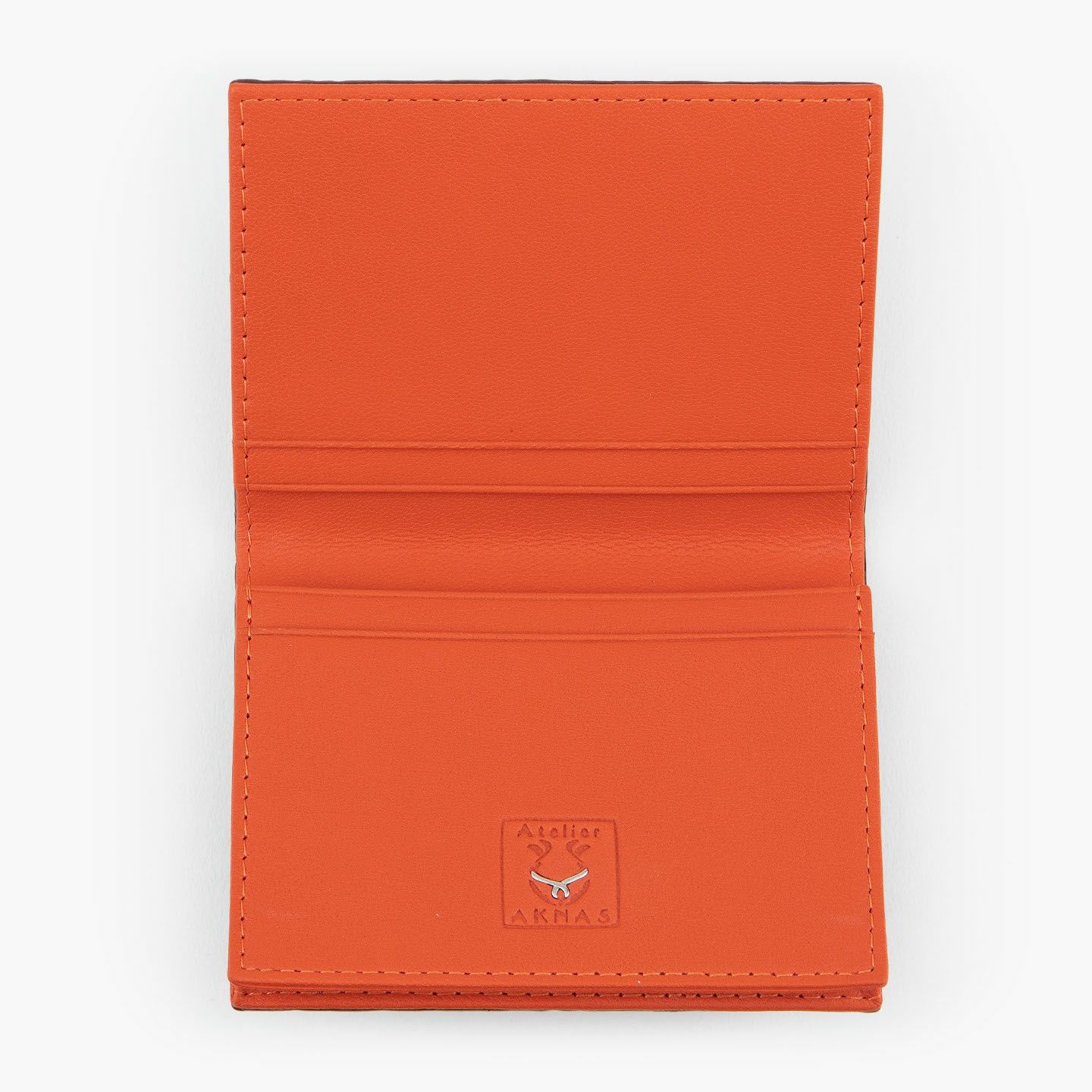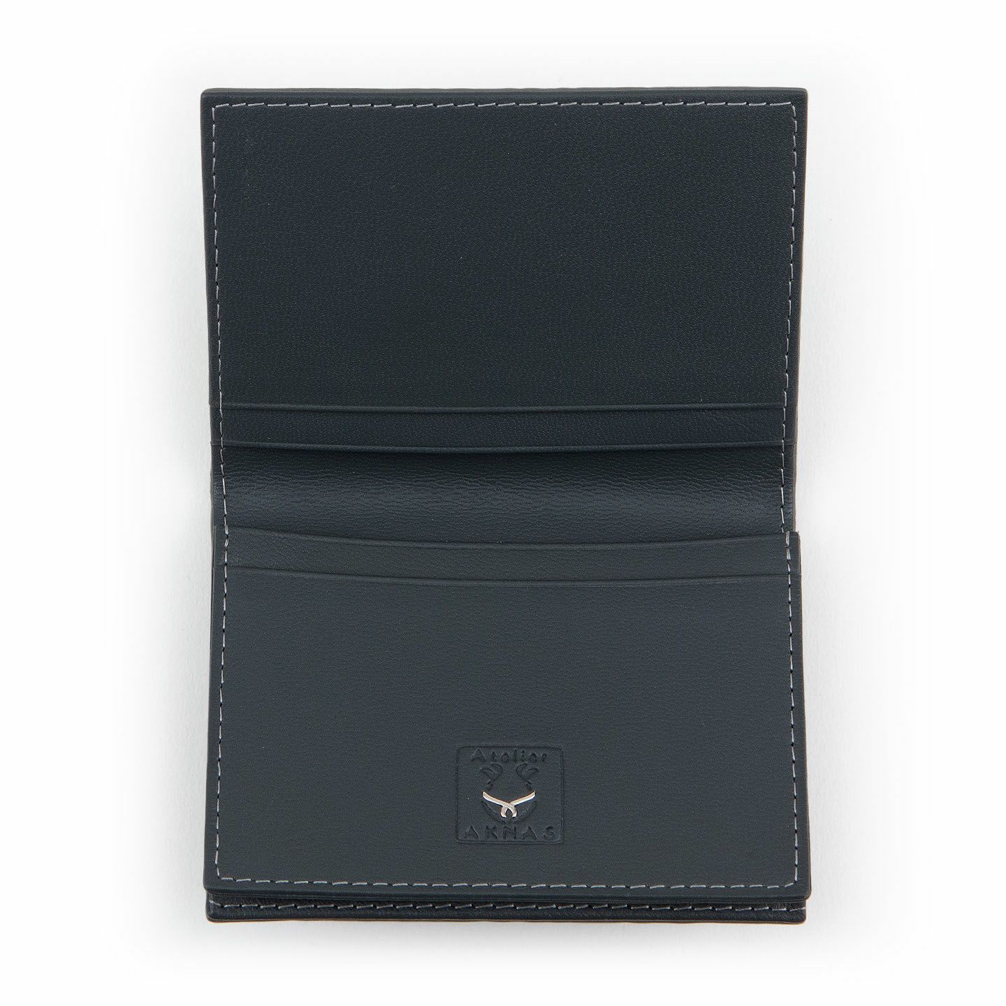 革製品としての最高のパフォーマンスを実現するために、革職人たちが飽くなき探求と努力、クリエイティビティとクオリティを追求しているブランド『Atelier AKNAS』の名刺入れ(S)。メインポケットには、紙袋のように底部までマチが付いている「通しマチ」を採用し、一般的な名刺の厚さであれば30枚ほどまで入れられるとともに、3つのサブカードポケットも備えて名刺の仕分けができ、その収納性と実用性で貢献。ガラスビーズを散りばめたような小さな鱗が美しいたエイ革「ガルーシャ」を、外装として贅沢に纏わせながら、古来より“ラッキーフィッシュ”と呼ばれてきた縁起の良さも、ビジネスシーンにもたらしてくれる。