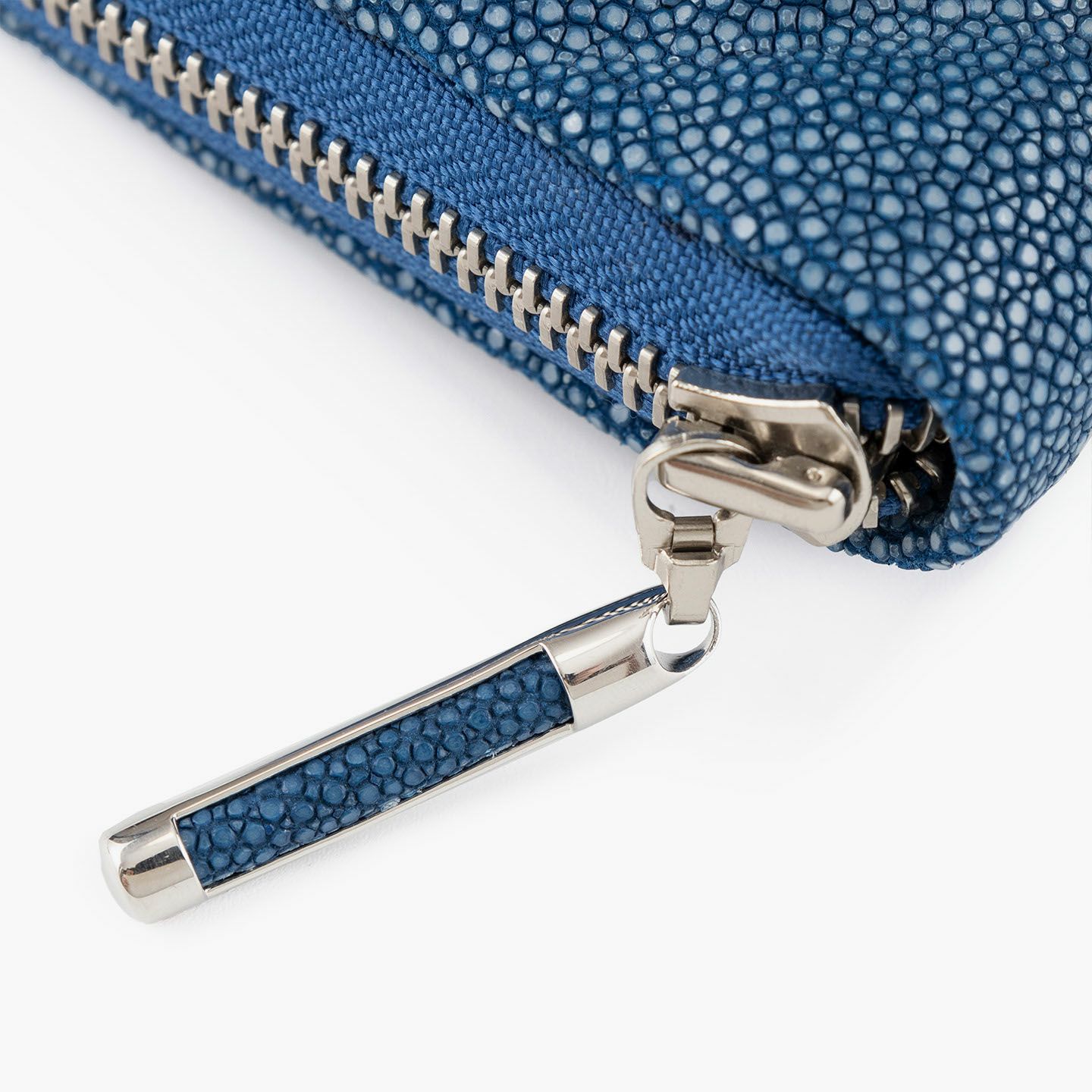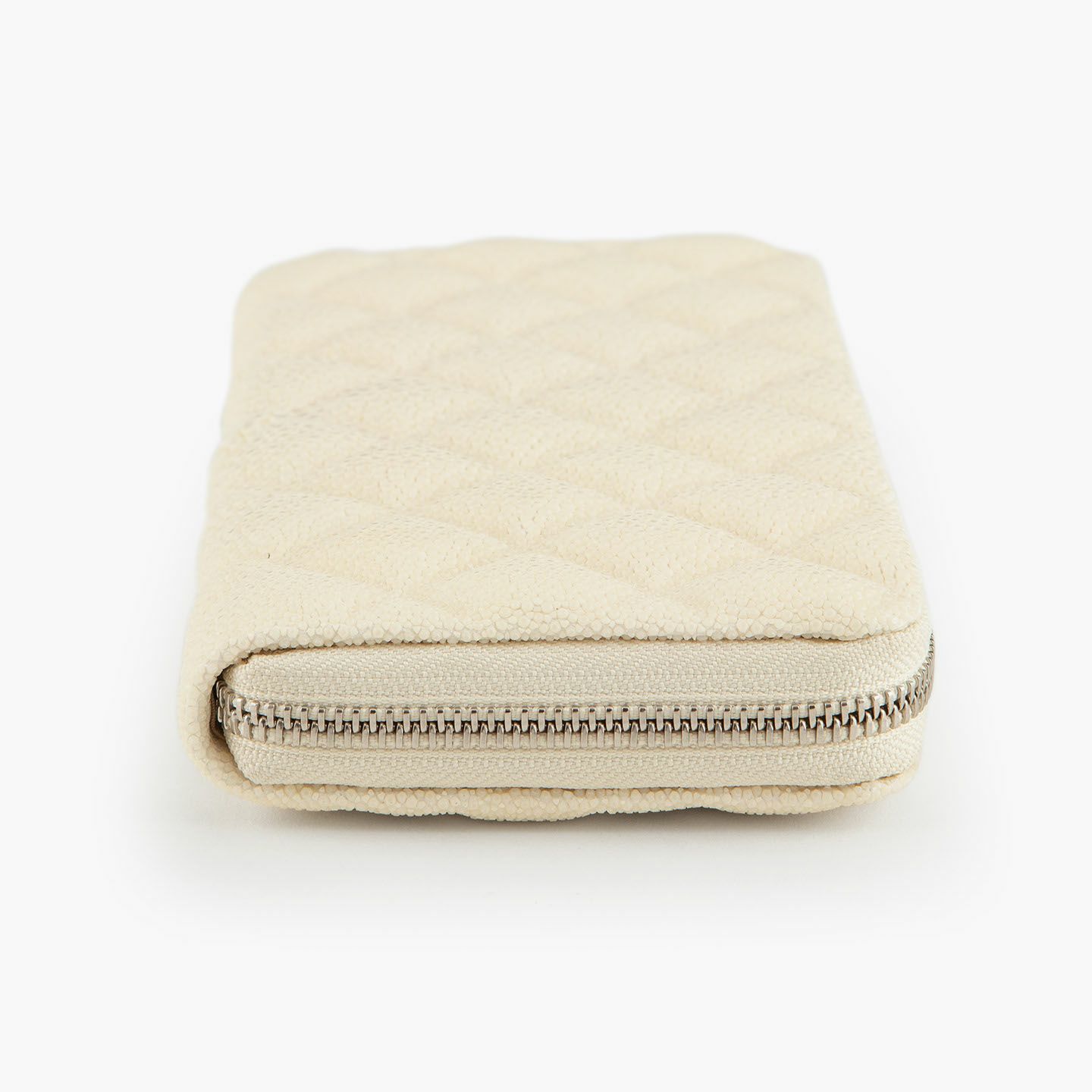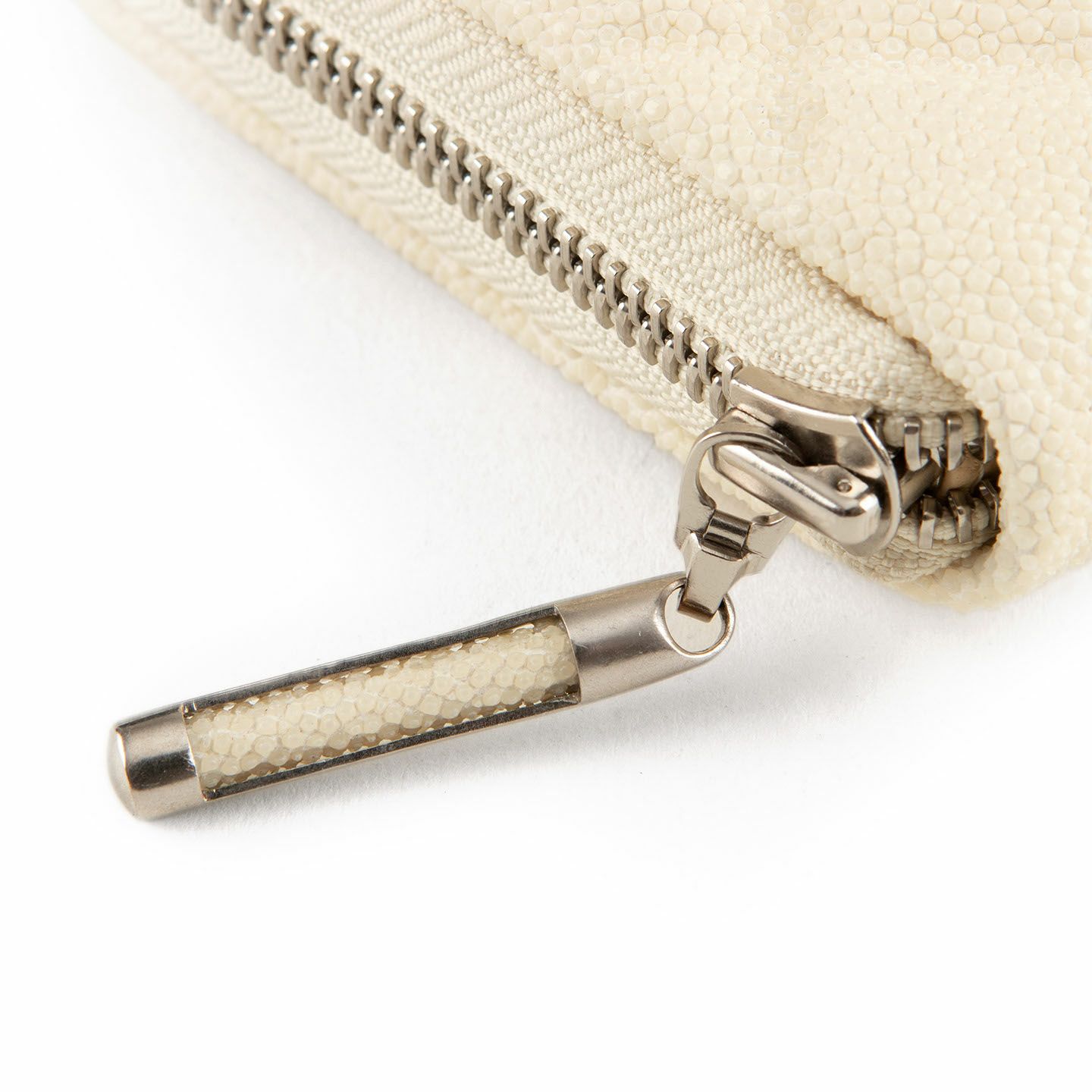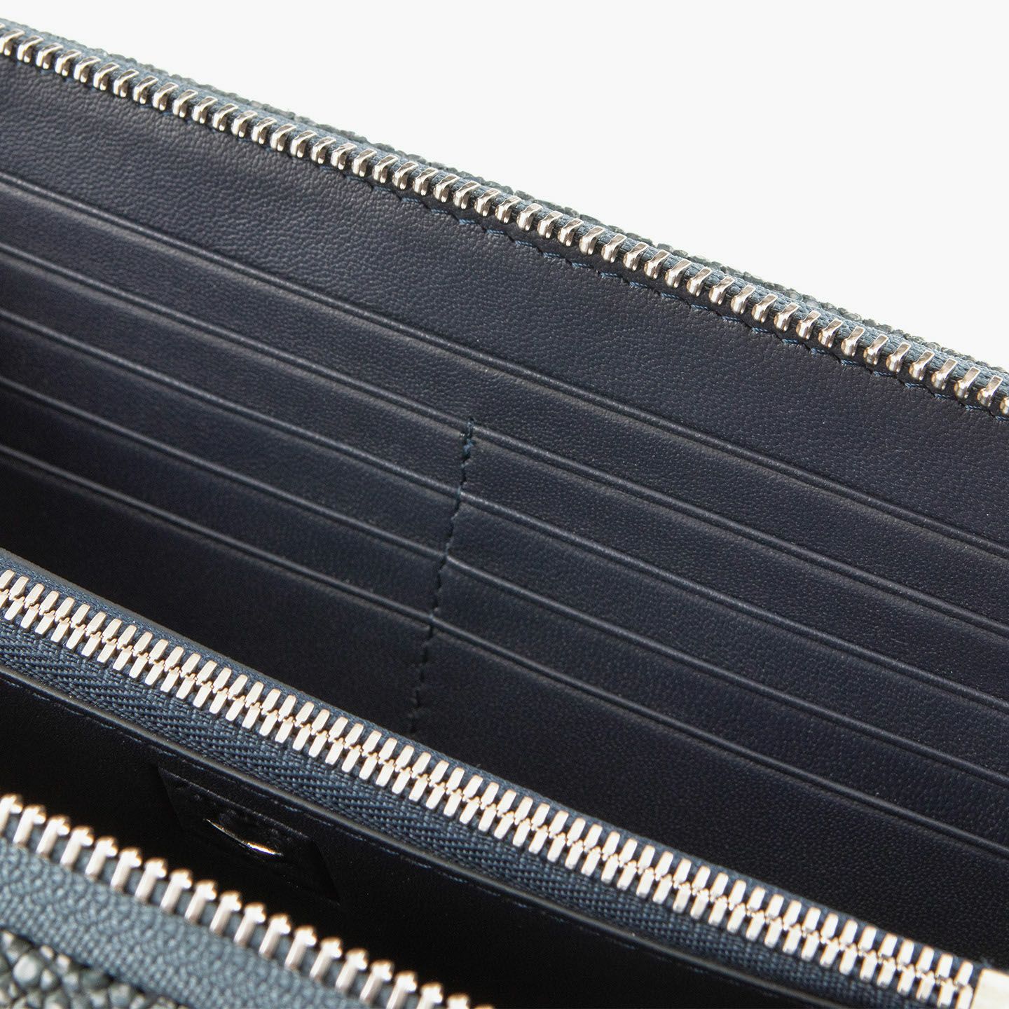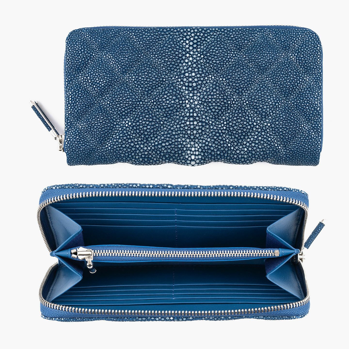 「いつも一緒に人生の旅の時間を刻んでいく革製品でありたい」という、想いを込めているブランド『Atelier AKNAS』のラウンドジップ長財布(ダイヤエンボス)。ガラスビーズを散りばめたような小さな鱗が美しく、縁起が良いと重宝されてきたエイ革「ガルーシャ」の硬い皮革の下に、特殊なクッション材を入れて試行錯誤の末にエンボス加工のダイヤ模様を成功させた、ブランドの真骨頂とも言える独創的なデザインで世界的にも希少なコレクション。贅沢な極上感を纏った高品位でエレガントな外装の魅力とともに、三層に分かれている内装の設計により収納物の整理がしやすい実用性も兼ね備え、大人の感性を満たしてくれる。