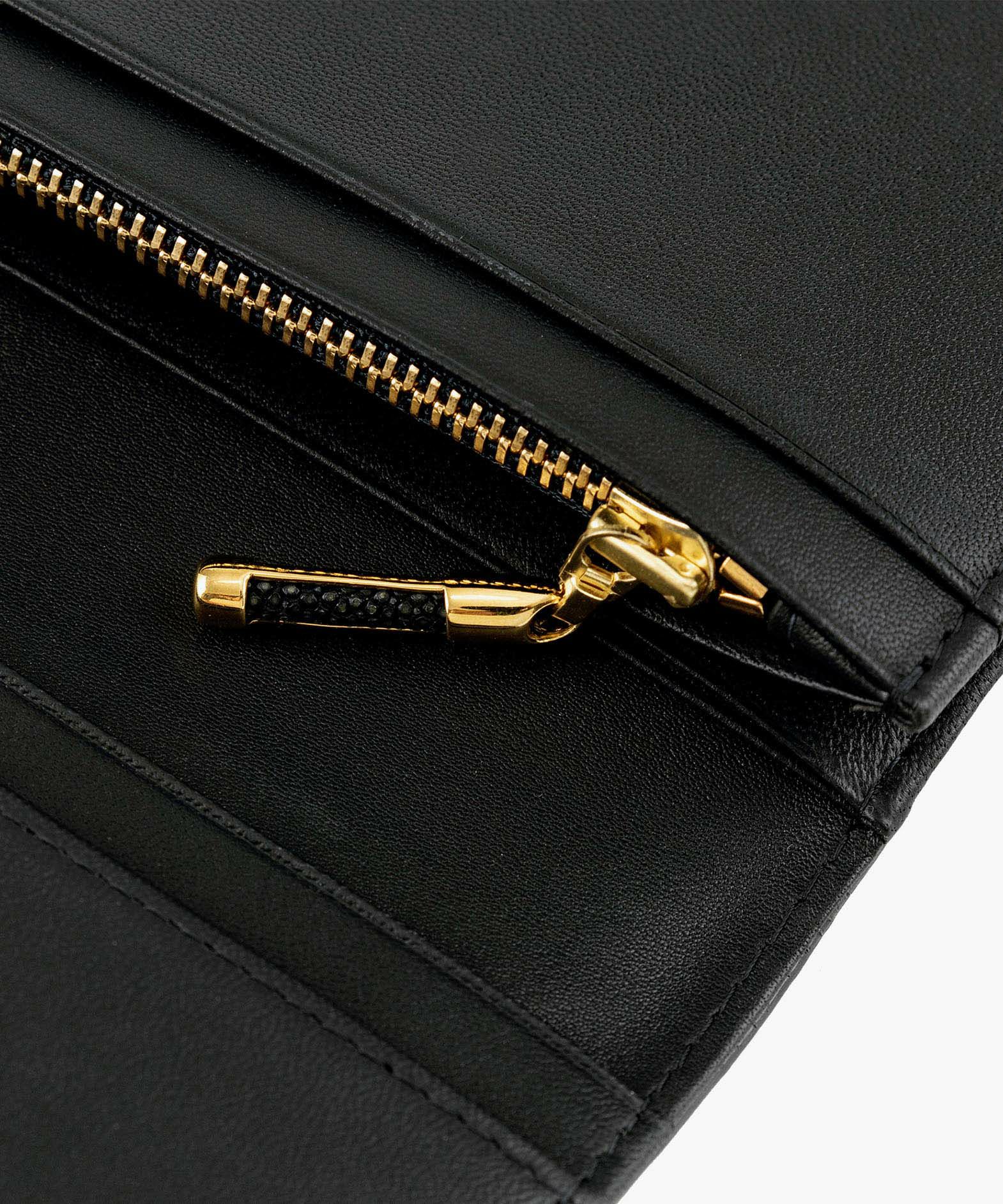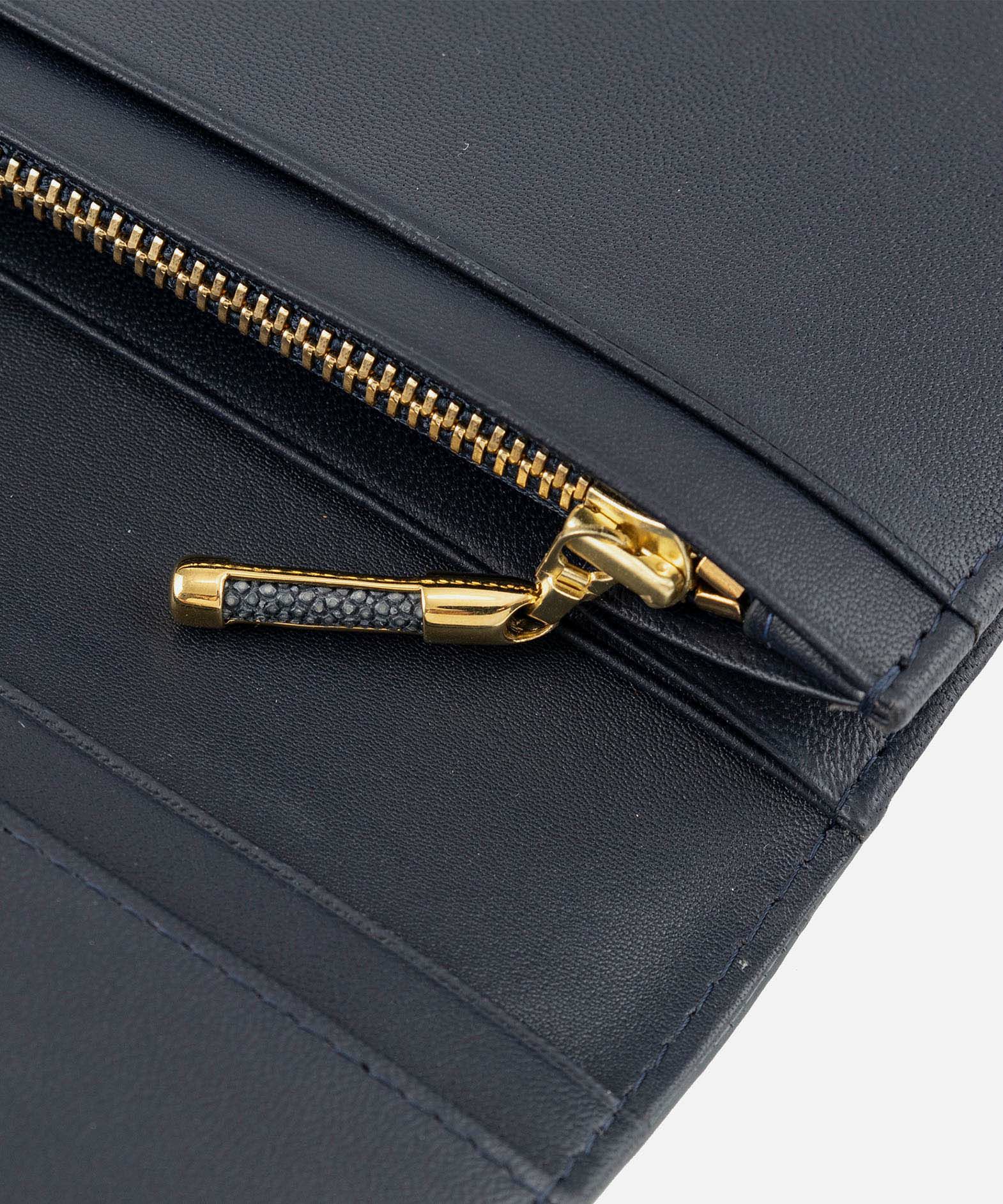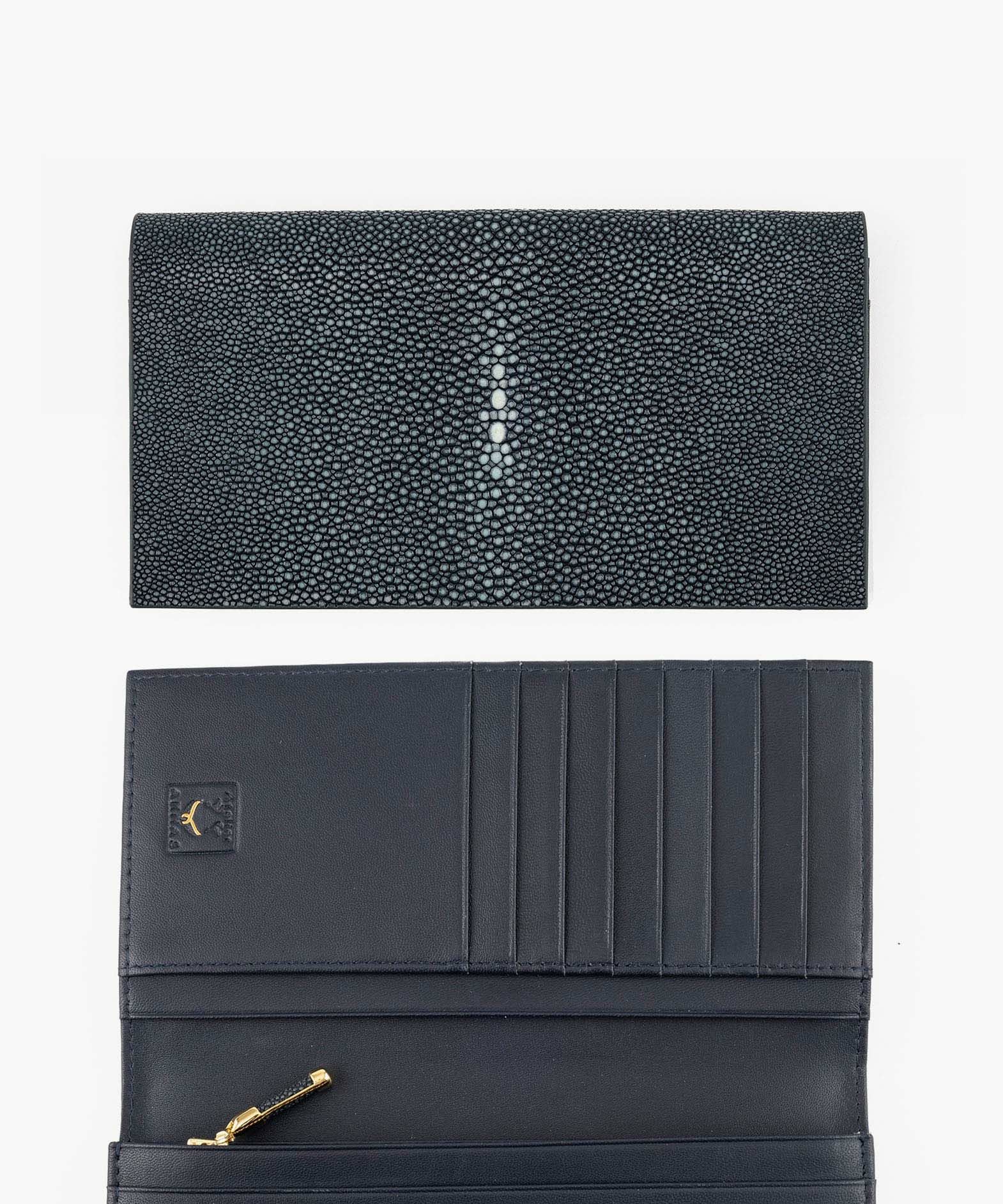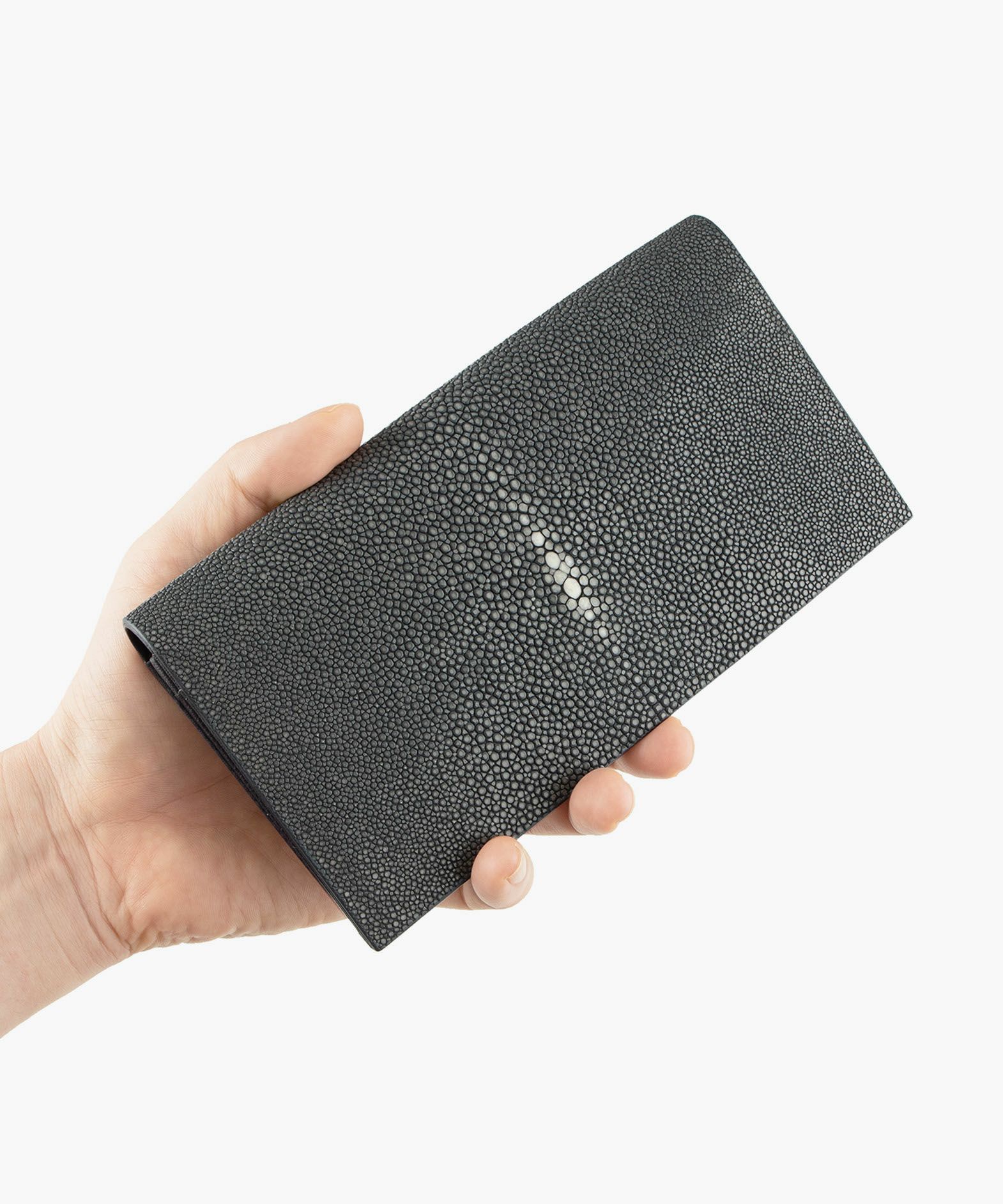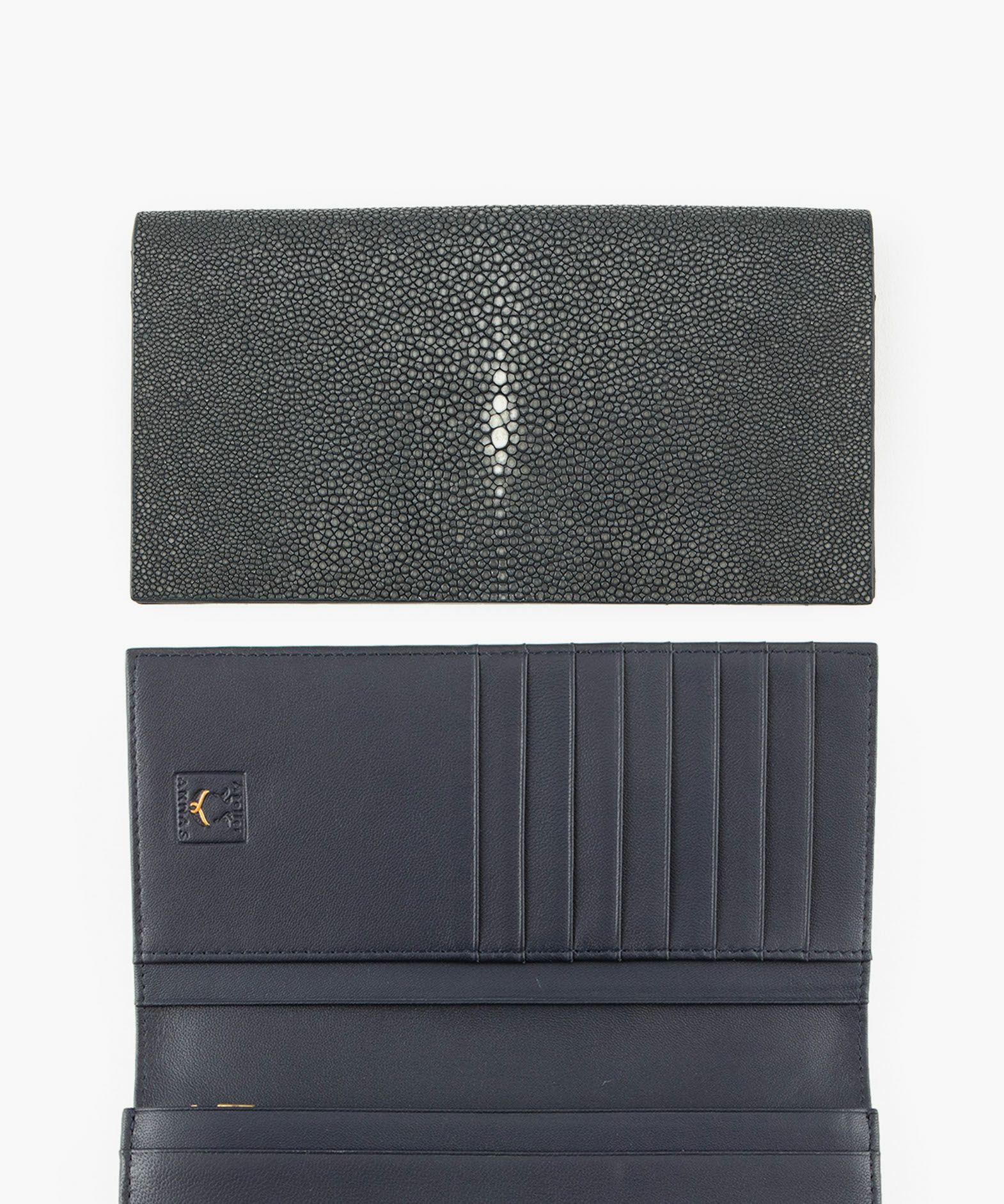 革職人たちの飽くなき探求と努力、クリエイティビティとクオリティが、革製品としての最高のパフォーマンスを実現しているブランド『Atelier AKNAS』の長財布(小銭入れ付き)。圧倒的に堅固で扱いにくい反面、“100年モノ”と言われるくらい強度と耐久性に優れていることでも有名なエイ革「ガルーシャ」が、ガラスビーズを散りばめたような小さな鱗による他とは異なる美しさを放ち、個性を輝かせる大人の魅力を演出。重厚感あふれる外装と相反するほどに繊細な内装は、扱いやすく収納性に優れたポケットの多さも魅力で、スマート&オールインワンの機能美を称えながら、シックでハイセンスな極上感を醸し出させてくれる。