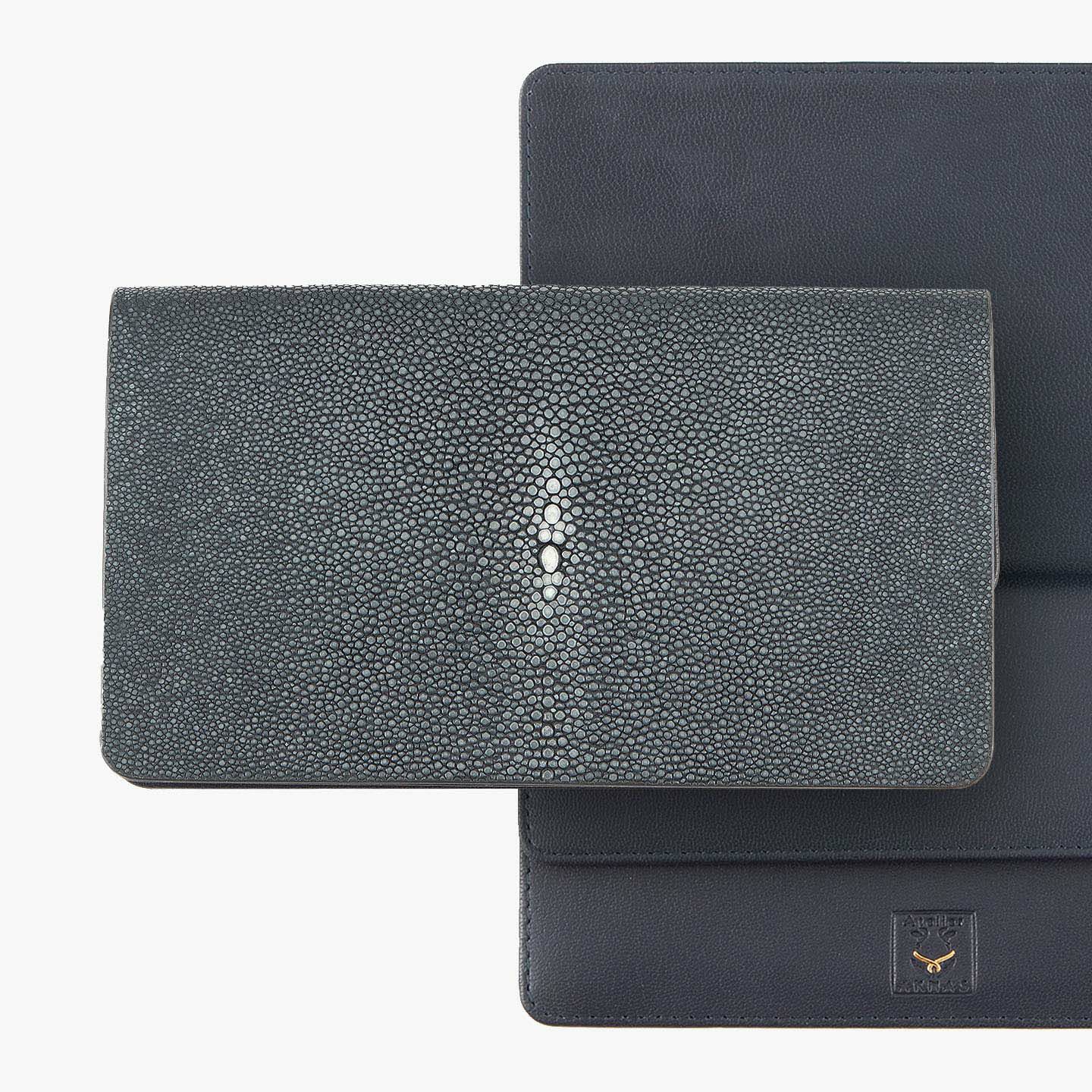 フレンチならではの美しいデザインとともに、他の人たちとは違った美学によるクールで洒落た人生の旅へと誘う、ブランド『Atelier AKNAS』の長財布(小銭入れ付き)。縁起が良いと重宝され “海の宝石”とも称される、ガラスビーズを散りばめたようなアカエイの小さな鱗が美しい外装の「ガルーシャ」が、“100年モノ”と言われるくらい強度と耐久性を誇りながら、他のマテリアルでは味わえない美的センスによる唯一無二の存在感で魅了。その佇まいを引き立てる一見シンプルな内装は、小銭入れ・カードポケット共通のカブセを設けて、紙幣入れとセパレートさせた創造的なデザインが、エグゼクティブな印象を秘めさせてくれる。