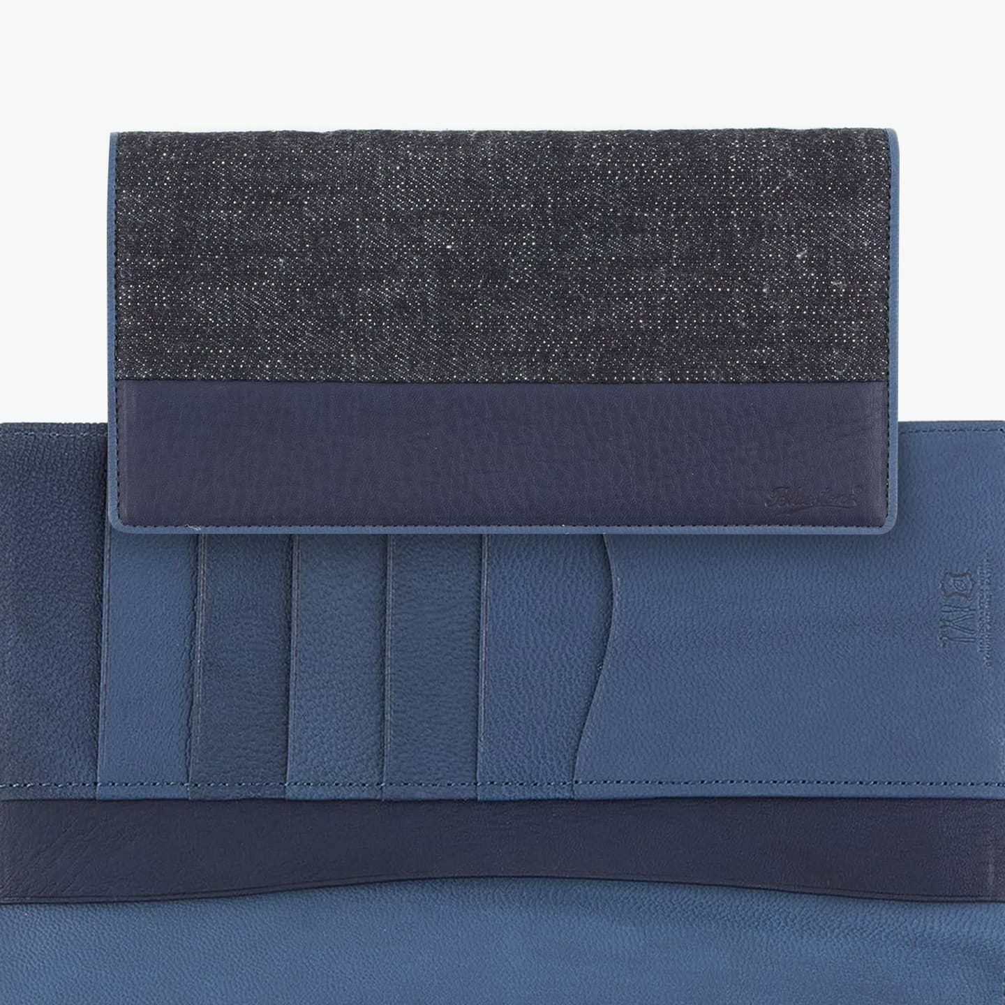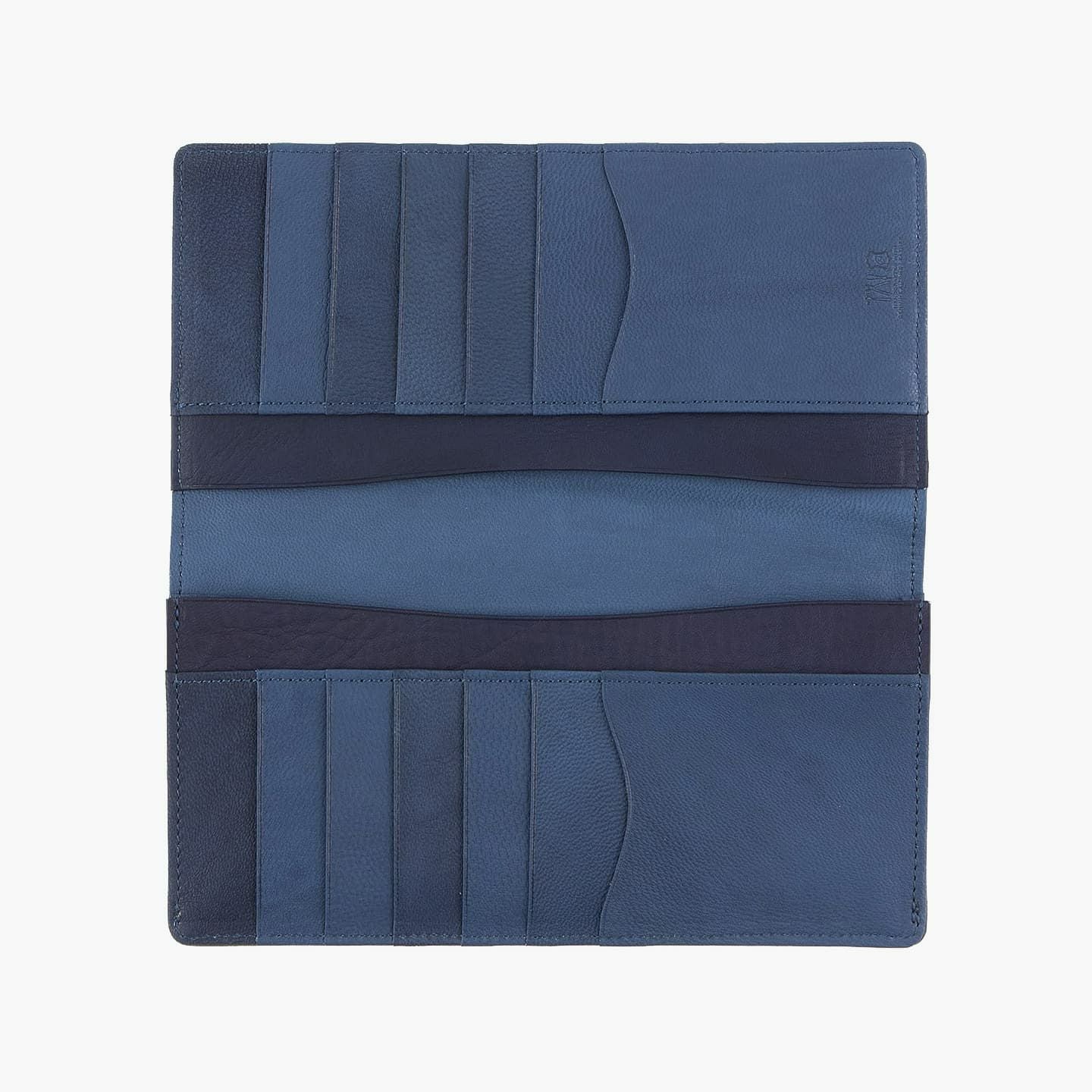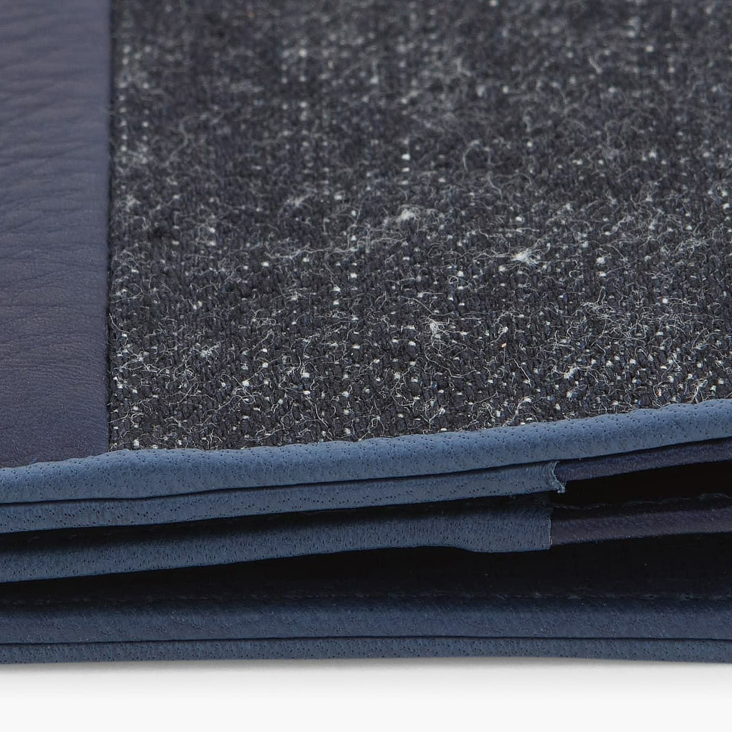 財布の内外ともに素材感があり、デザインの統一性も重視するため、あえてヌバックゴート革の銀面ではない裏面を使用。エイジングにより、手の脂などが染み込み、使うごとに自然なツヤが楽しめます。山羊革自体は、個性的な凹凸をしたシボと、独特な毛穴の形状が特長。薄くても丈夫で、型崩れしにくい特性があるため、高級レザー手袋やブランドのレザーシューズに使われることが多い素材です。また、しなやかで耐久性にも優れているので、身に付けるものやジャケットなどにも多く利用。アメリカ空軍がA-10フライトフローブ、アメリカ海軍がフライトジャケット(M-422)に使っていたことでも知られています。