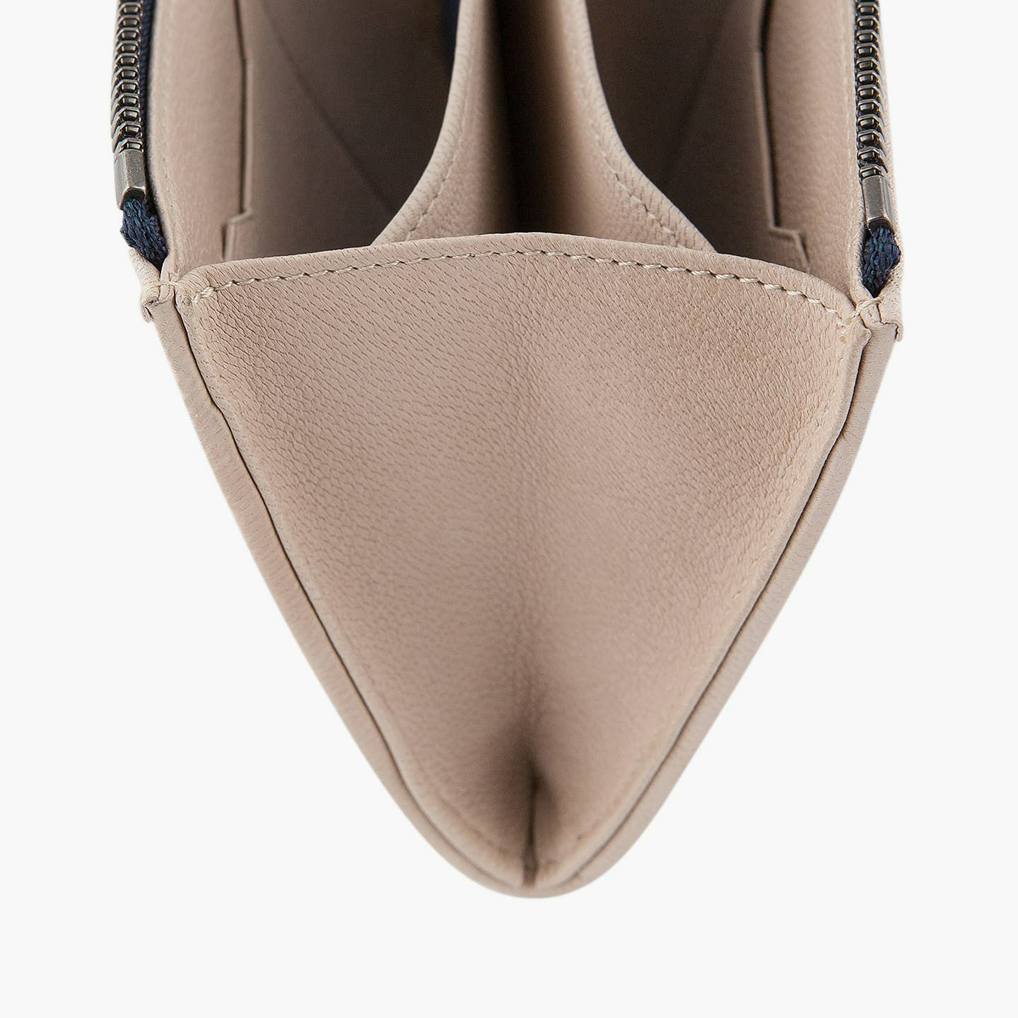 財布の内外ともに素材感があり、デザインの統一性も重視するため、あえてヌバックゴート革の銀面ではない裏面を使用。エイジングにより、手の脂などが染み込み、使うごとに自然なツヤが楽しめます。山羊革自体は、個性的な凹凸をしたシボと、独特な毛穴の形状が特長。薄くても丈夫で、型崩れしにくい特性があるため、高級レザー手袋やブランドのレザーシューズに使われることが多い素材です。また、しなやかで耐久性にも優れているので、身に付けるものやジャケットなどにも多く利用。アメリカ空軍がA-10フライトフローブ、アメリカ海軍がフライトジャケット(M-422)に使っていたことでも知られています。