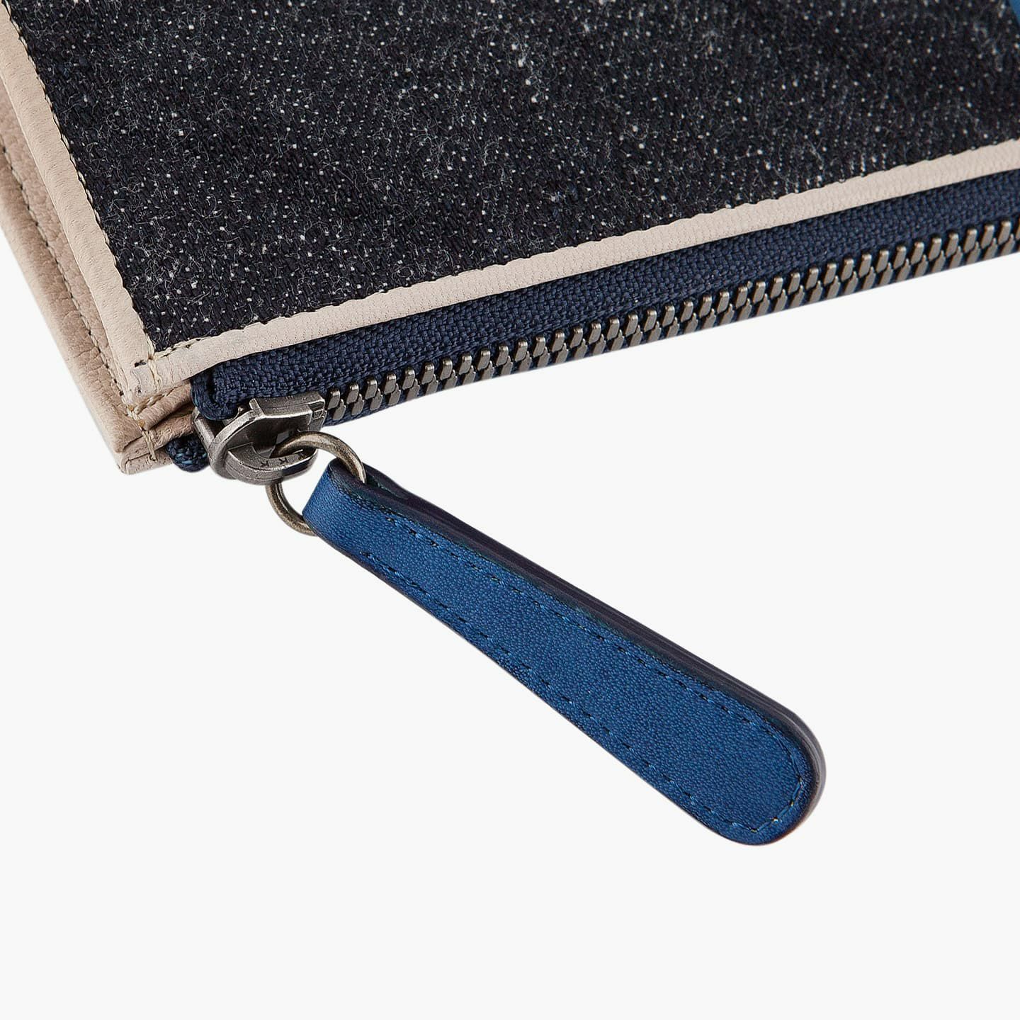「SUKUMO Leather」と「セルビッチデニム」を、バランス良くレイアウト。デニム地は、開閉の摩擦や使用時の擦れなどで、ビンテージジーンズのような“アタリ”が増し、オリジナル感を創出。
