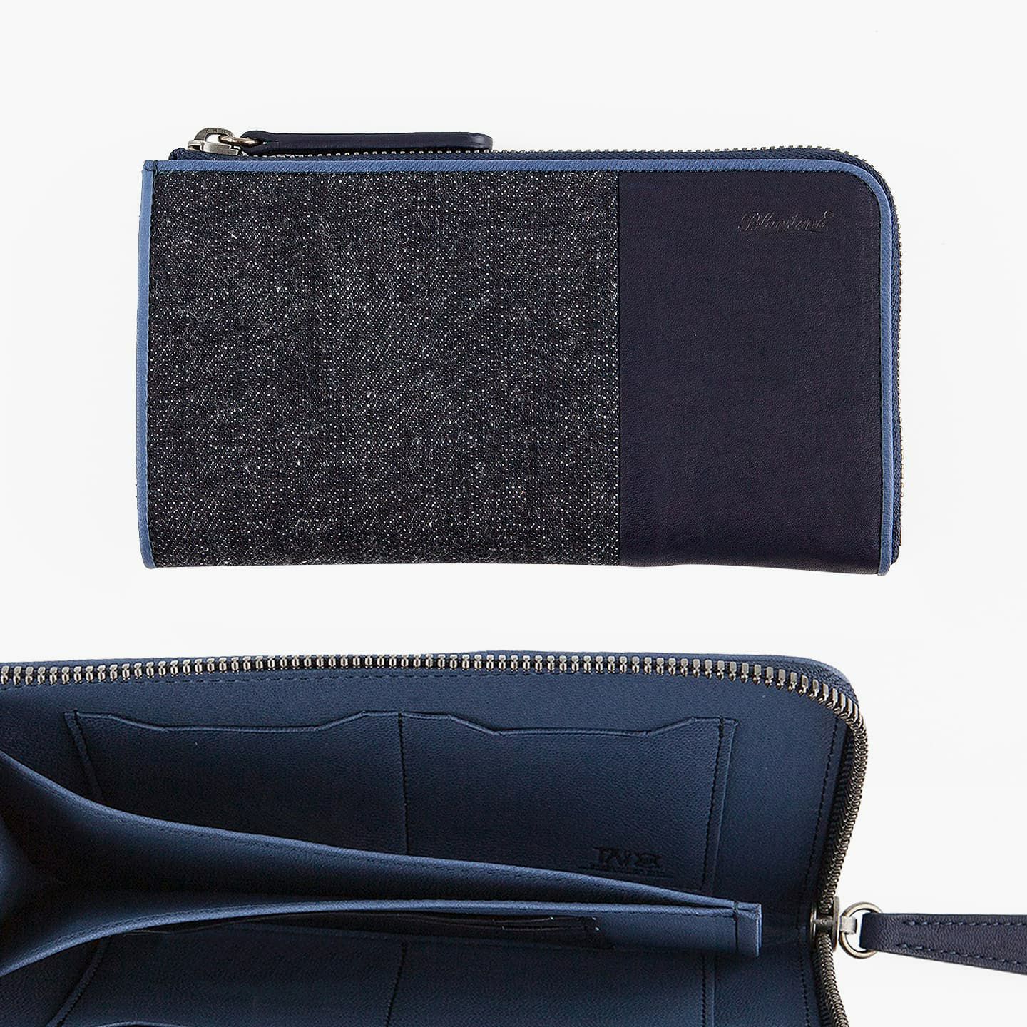 「セルビッチデニム」と「SUKUMO Leather」の異なる素材感と、絶妙なバランスを追求して生み出されたカッティングが、個性性的なスタイリッシュさを演出してくれる、『Bluestone®』による薄型のL字ジップウォレット。開いた時の使いやすさを追求した片マチは、適度な開口と紙幣を引き出しやすい設計を実現。そして、ふたつの素材による手にした時の独特の触り心地と、使い込むことで深まる色味や味わいが、長く使い続けたくなる気分を高めてくれます。