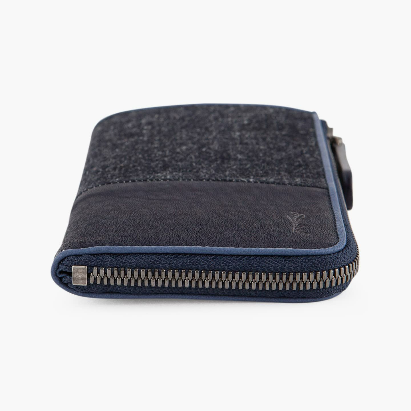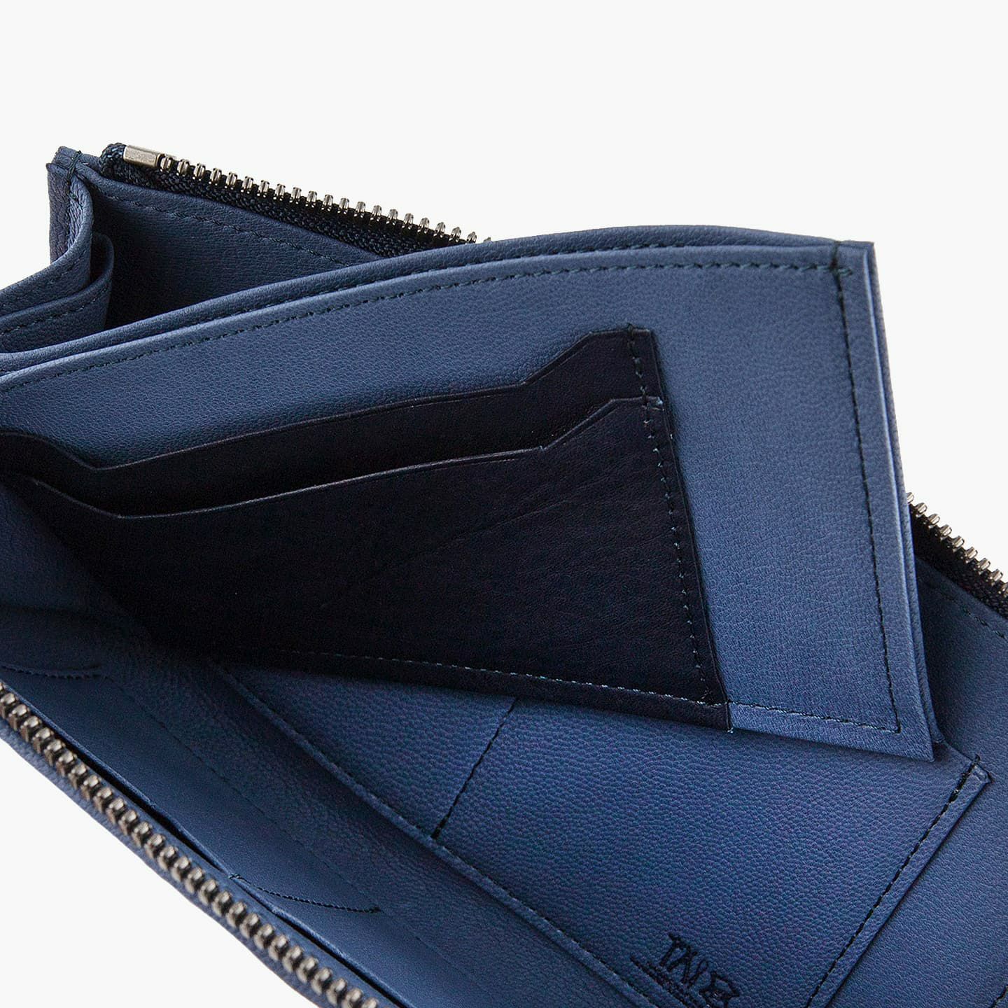 内装には、開いた時の色のバランスと存在感を追求し、薄く漉き藍染を施した「SUKUMO Leather」と、ナチュラルカラーの山羊革(裏革)を組み合わせたコンビネーション。入念なネン入れと正確なステッチワークが、高品位な上質感を創出。小銭入れの両脇に設けたカード入れは、色合いやシボ感が異なる革を使用し、独特の風合いを醸成。