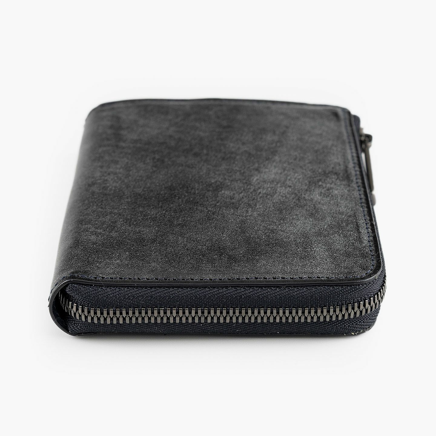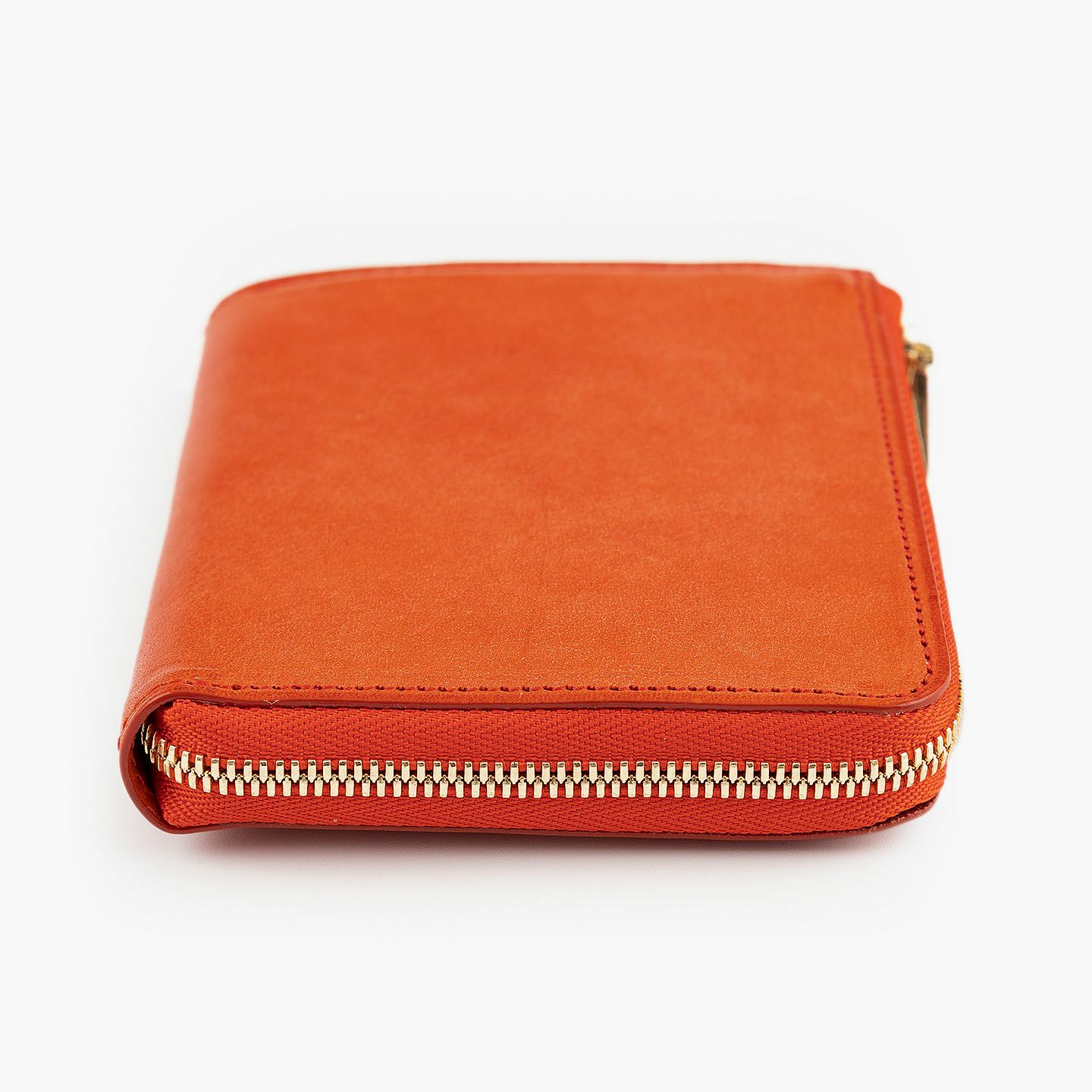 自然を感じられる太陽や海などの色彩と、それらが織りなす情景のストーリーをデザイン化している、ファクトリーブランド『SOLSOMARE』のL字ファスナーマルチ財布。使い込むほどに磨かれて上品なツヤ感を纏い、手に柔らかく馴染でいく「ロロマ」は、ブランド定番のOrange・Navy BlueとMLS別注のGrigioによる3色をラインナップし、セレクトしたカラーの色味と透明感が深まっていくのも味わい深い。小さなバッグでも収納・携帯しやすいコンパクトさと、その見た目以上のスマートな収納性が、手のひらサイズによる収まりの良さとともに、扱いやすい相棒感を抱かせてくれる。