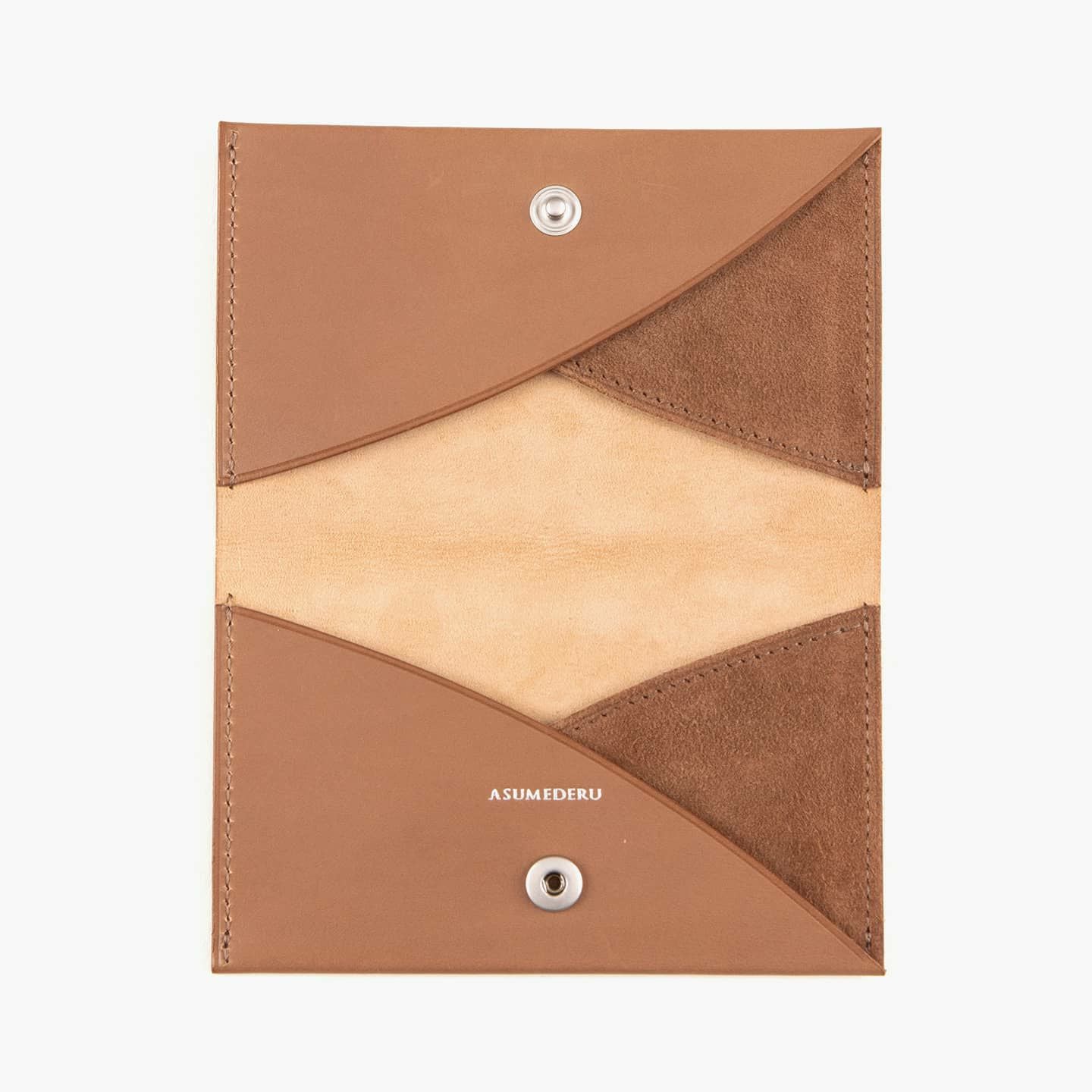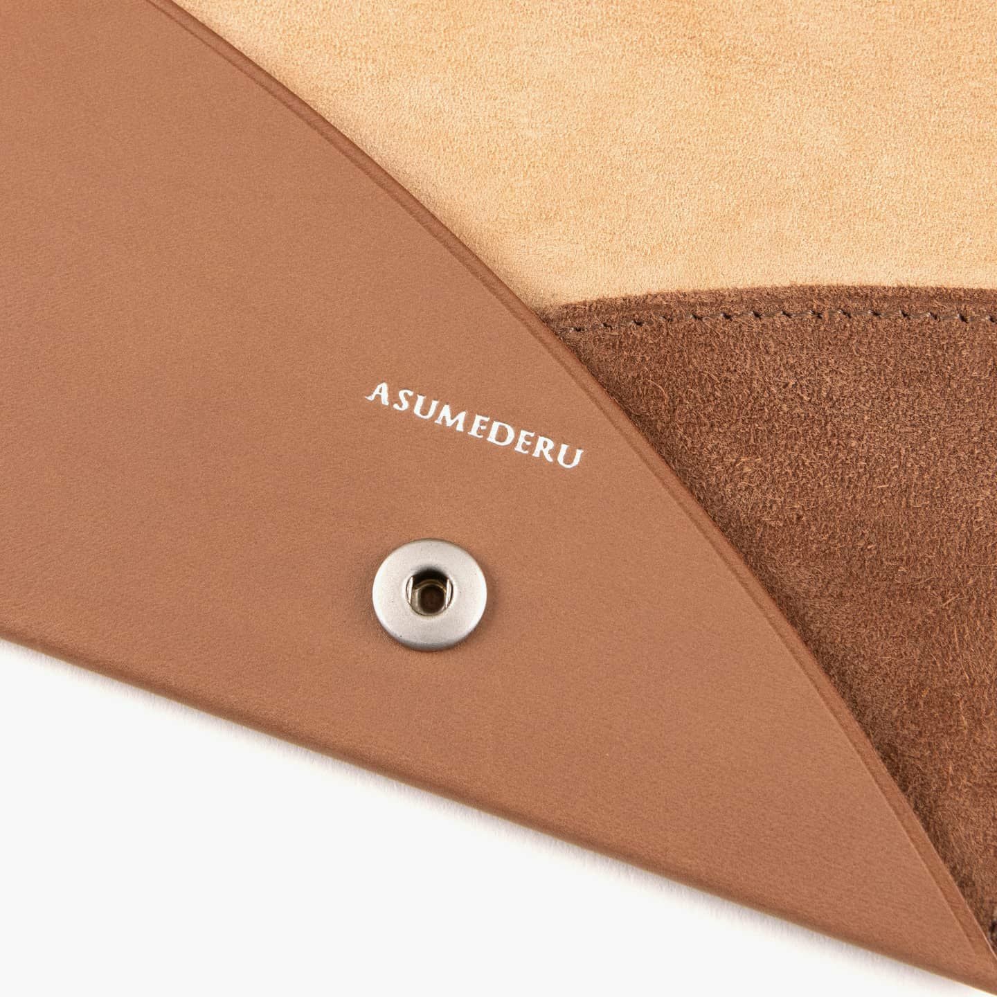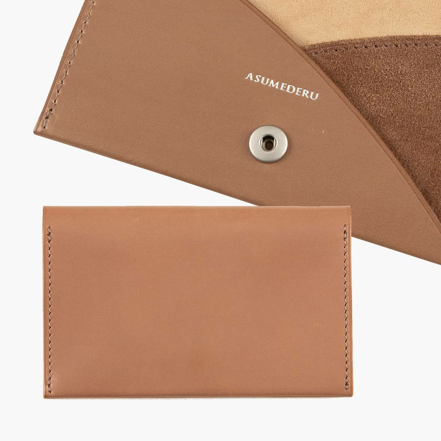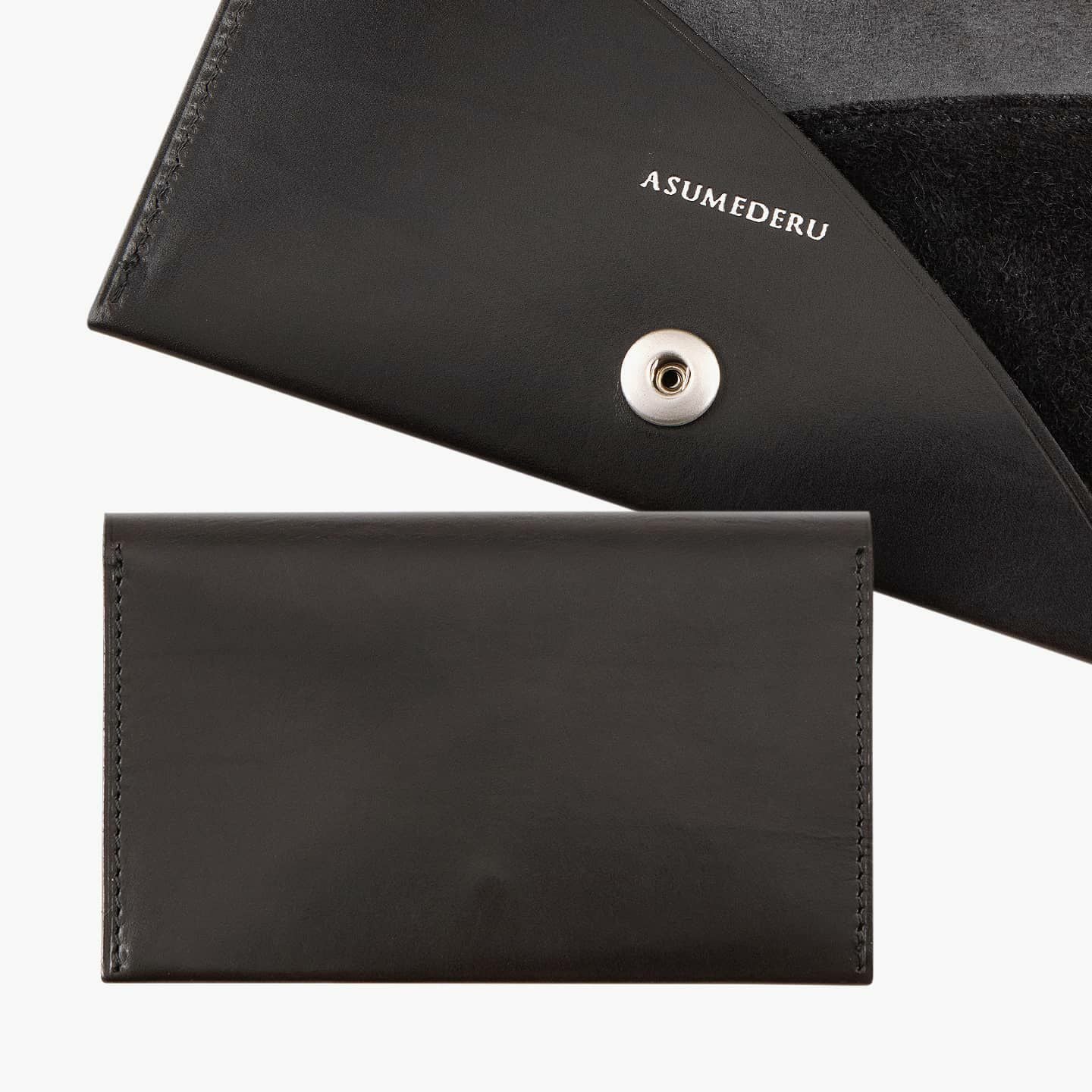 『ASMEDERU』では、40年以上も財布を作り続けている豊富な経験を生かし、一流の技術が必要とされる薄くてシンプルなデザインを実現。本来の革小物は、小さなパーツを多数組み合わせて作られますが、本製品は最小のパーツによる設計で、デザインのアクセントにもなっている美しい縫製も、あえて必要な部分のみに抑えています。