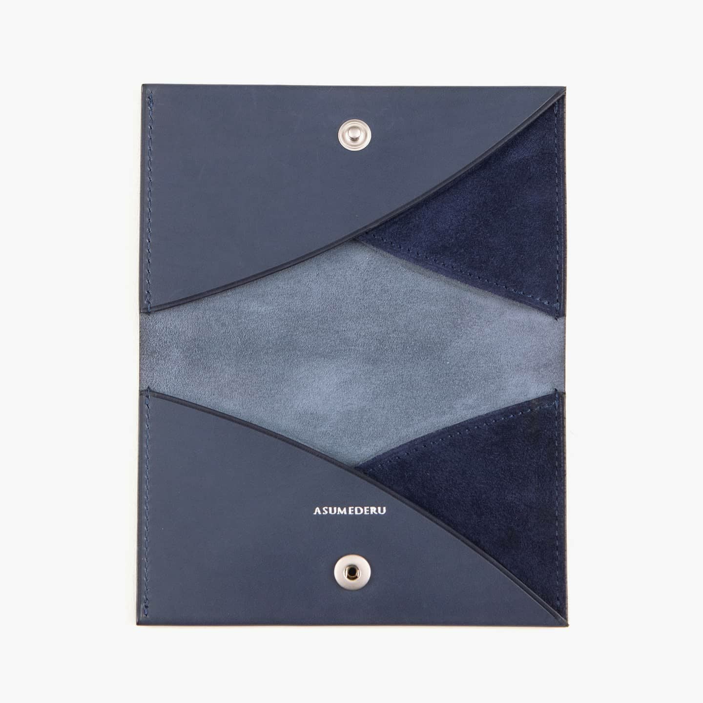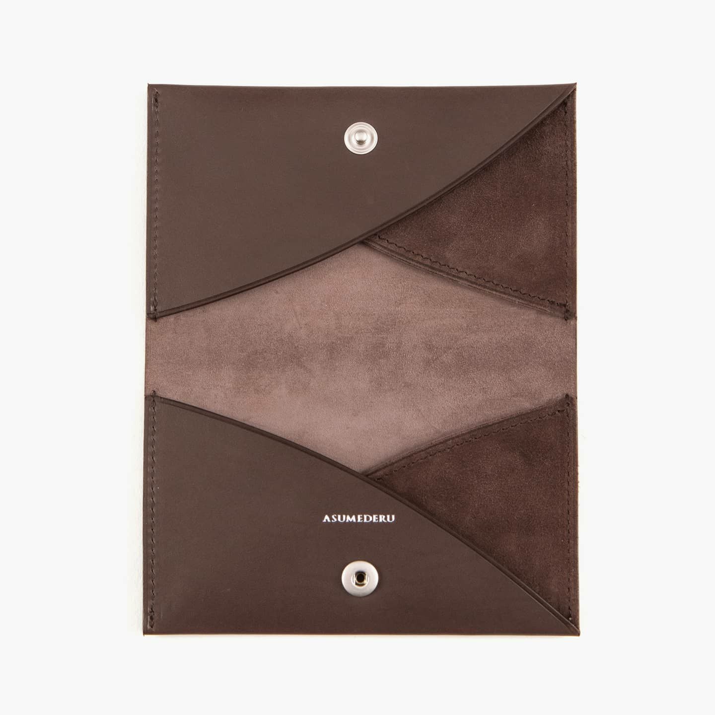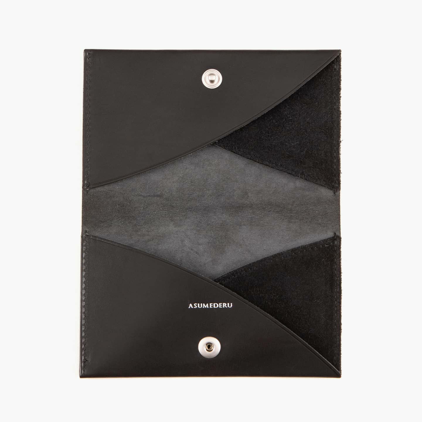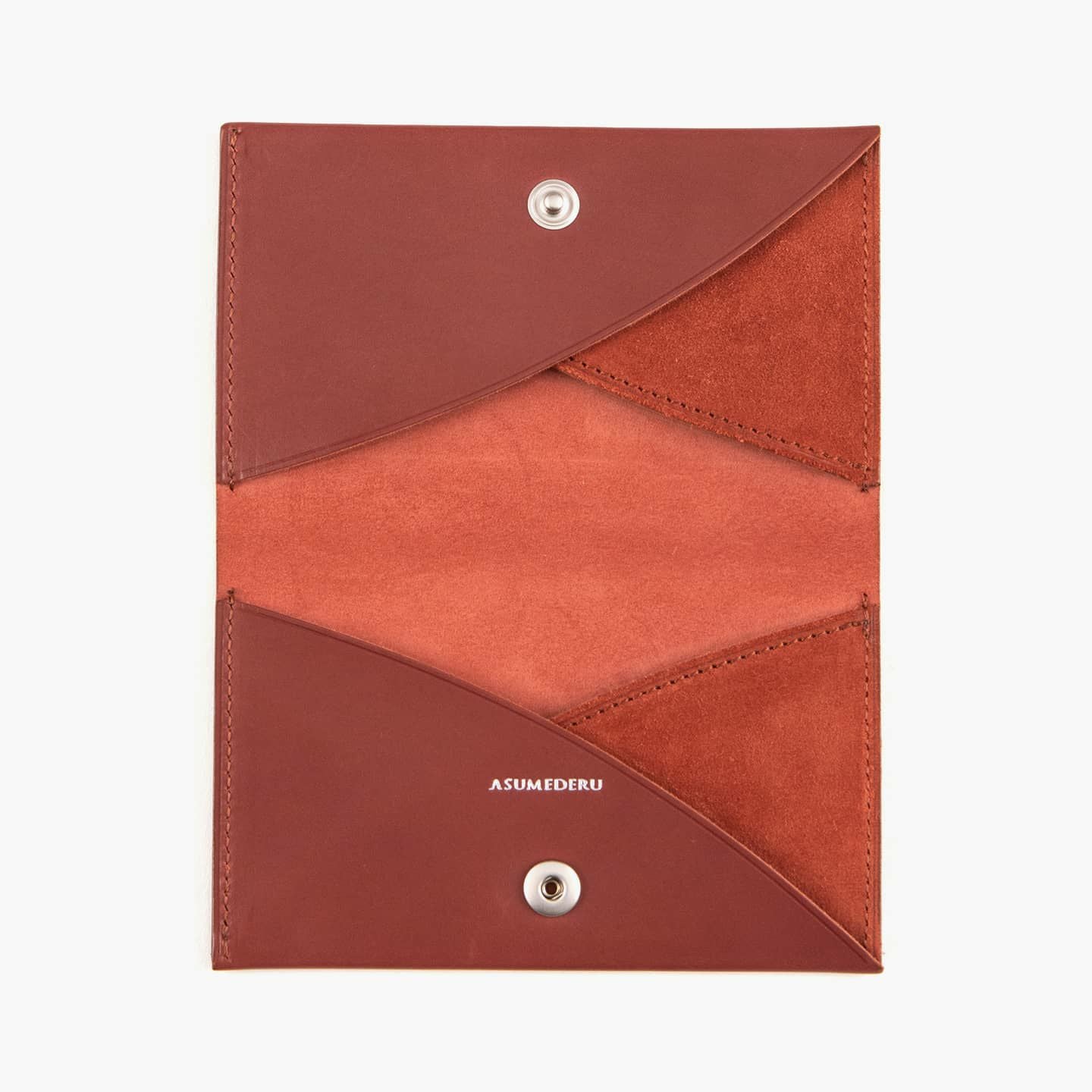 『ASMEDERU』では、40年以上も財布を作り続けている豊富な経験を生かし、一流の技術が必要とされる薄くてシンプルなデザインを実現。本来の革小物は、小さなパーツを多数組み合わせて作られますが、本製品は最小のパーツによる設計で、デザインのアクセントにもなっている美しい縫製も、あえて必要な部分のみに抑えています。