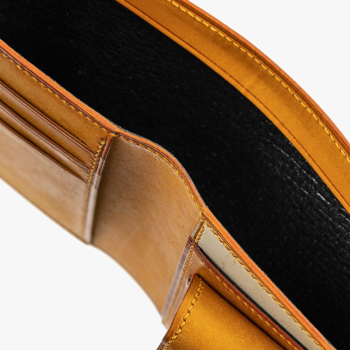 人気の“モンテローザ”に、小銭入れを追加したオールインインワンの新モデル。札入れの外装サイドが、二つ折りを開くと膨らみ、指の引っ掛かりができることで、紙幣の出し入れがしやすい構造になっています。また、その裏張りとして採用している、ブラックカラーで統一した「国産豚革(アメ豚)」が、紙幣がスムーズに滑るメリットとともに、調湿効果でカビなどにも強いので、機能性だけでなく耐久性にも貢献。さらに、カードポケット3つ・フリーポケット3つを設けながら、小銭入れの上のフリーポケット段に、外装の「ゴースト」を内装のアクセントにしているのも洒落ています。