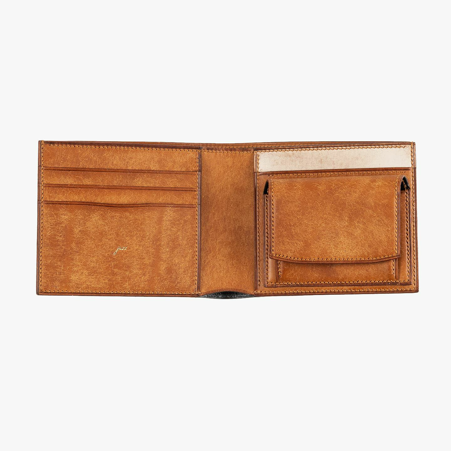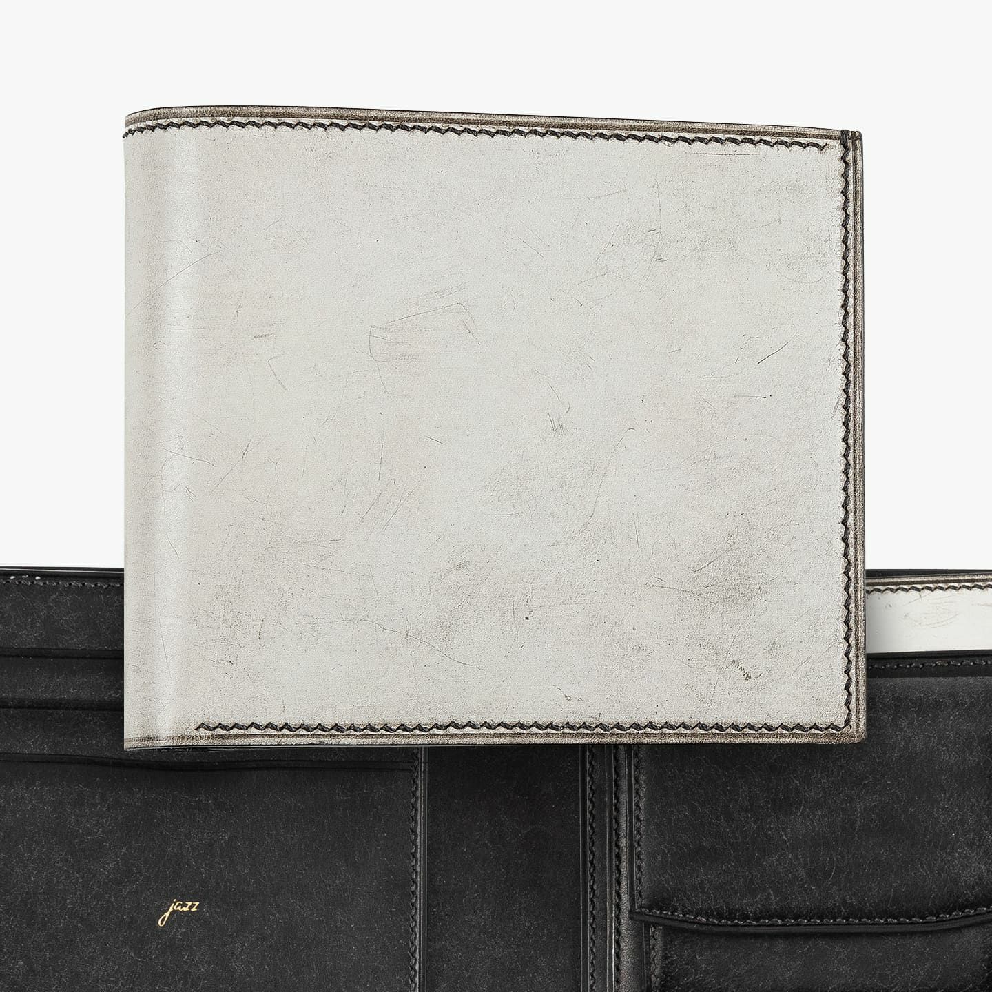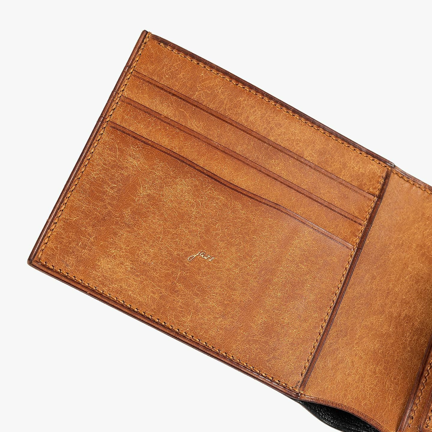 革職人・渥美恵輔が、製作の完成時と登山の登頂時の達成感が似ていることから、製品名として山の名称を冠している『jazz』。伝統的な製作技法で手間暇を掛ける執着心を、高度な難易度の登山へ向かう挑戦心とシンクロさせ、一枚革から型紙をあてがって断裁し、総手縫い仕立てで1点1点すべて手作りしている想いを、それぞれのネーミングにも込めています。コバも、伝統的な切目本磨き仕上げを採用し、削っては磨き・削っては磨きを繰り返して蝋を刷り込ませ、一枚革のような美しい光沢を獲得。ハイクオリティな完成度を実現することで、見た目の美しさとともに、優れた耐久性・強度も両立させています。