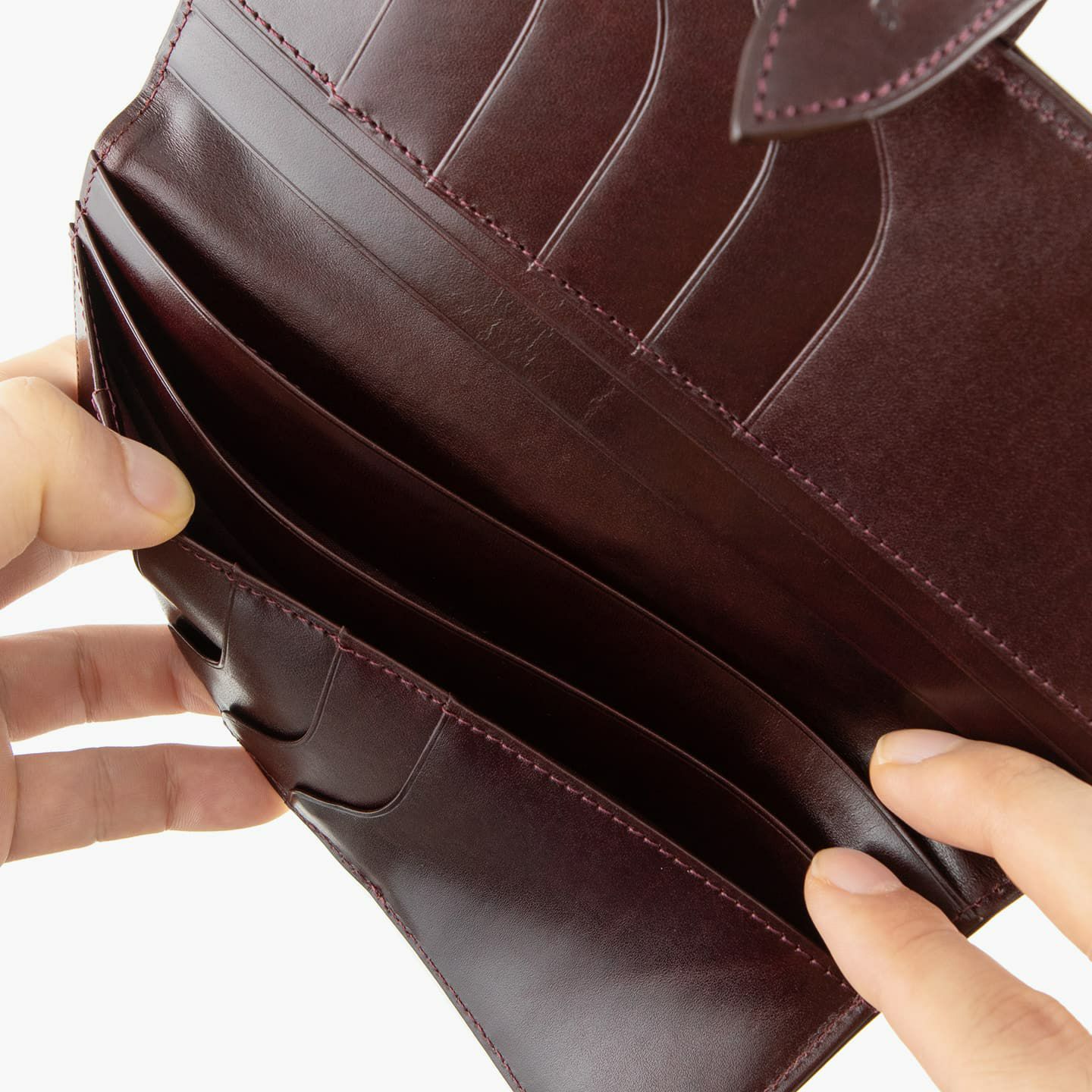 1873年に創設した老舗で、ベルギー唯一のタンナーでもあるタンナリー マズール社の「ルガトー」。 最高級とされるフランス原産ステア(生後3〜6カ月以内に去勢された生後2年以上の雄牛)のショルダーを、さらに厳選して使用しています。首から肩にかけてのショルダー部位の特徴でもあるシワ模様“トラ”に、染料を染み込ませることで色の濃淡が生まれ、奥行きのある美しい模様になるのも魅力。革本来のワイルドさと高級感あふれるエレガントさを併せ持ち、「革の宝石」に相応しい、きめ細やかで艶やかな透明感に満ちた仕上がりになっています。堅牢度や耐久性にも優れ、自然の模様なので一枚一枚同じものがなく、すべてがオンリーワンの素材です。