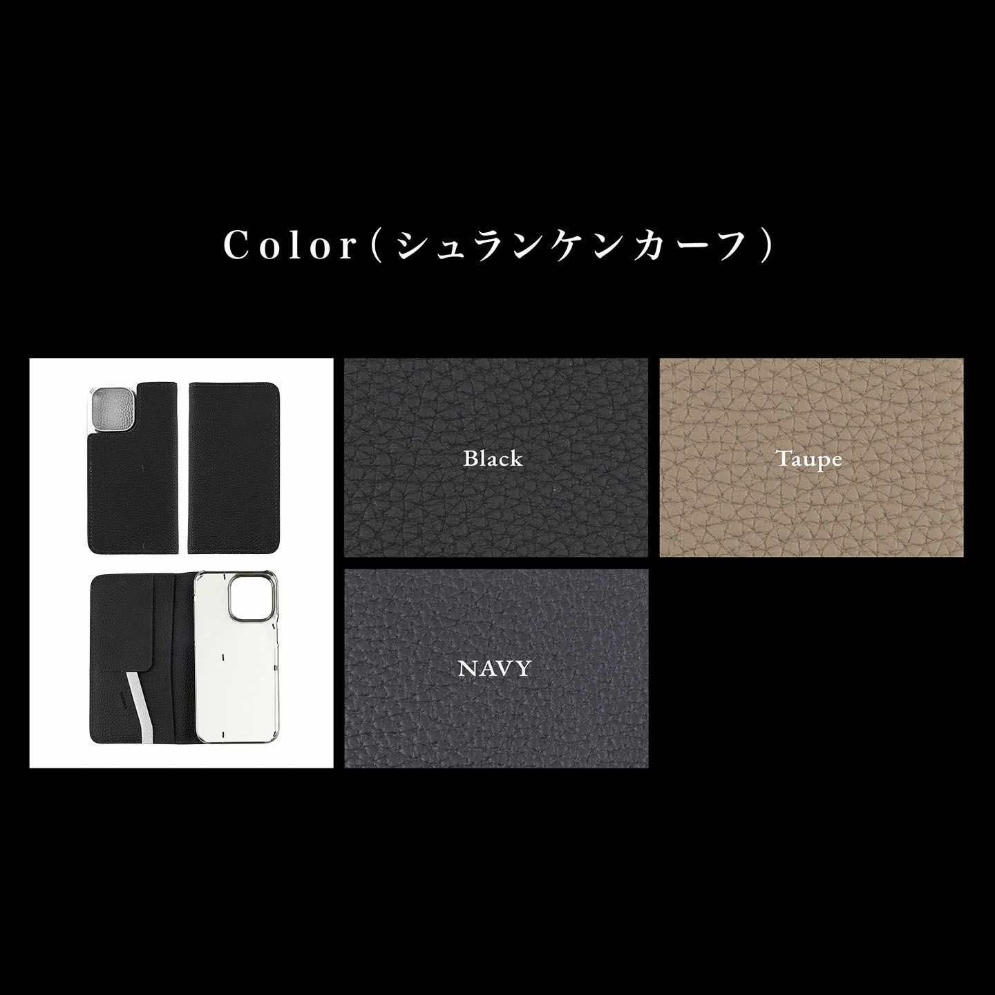 内装に、カードポケット2つ・フリーポケット(小)1つ・フリーポケット(大)1つを備え、横型のポケットにすることでiPhoneの画面へのキズを防ぎながら、カード・名刺・紙幣などの収納・携帯が可能。外装・内装の「シュランケンカーフ」は3色からセレクトできるとともに、内装ポケット装飾として「シェーブル」に変更すれば、そのアクセントを豊富な20色から選ぶことができます。さらに、マグネット式のフラップをオプションで追加することも可能で、裏返して留めるとスタンドになったり、背面側に貼り付けて通話中でも邪魔にならなかったり、さらなる使いやすさも実現。また、本体から「ポリカーボネート」の剥がれが起きにくいように縫い込んでいるステッチを、デザインのアクセントのように見せるなど、革職人としての独創性も注ぎ込まれています。