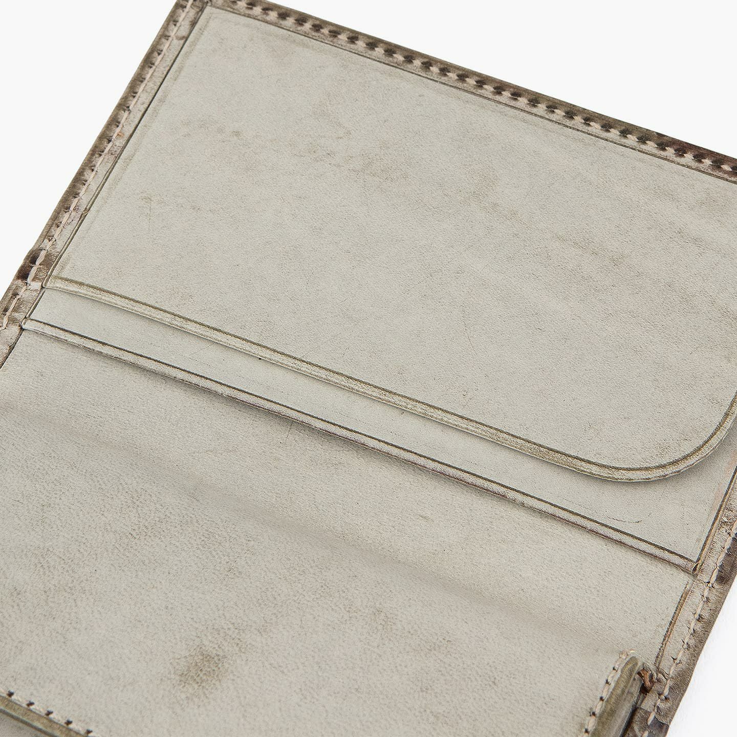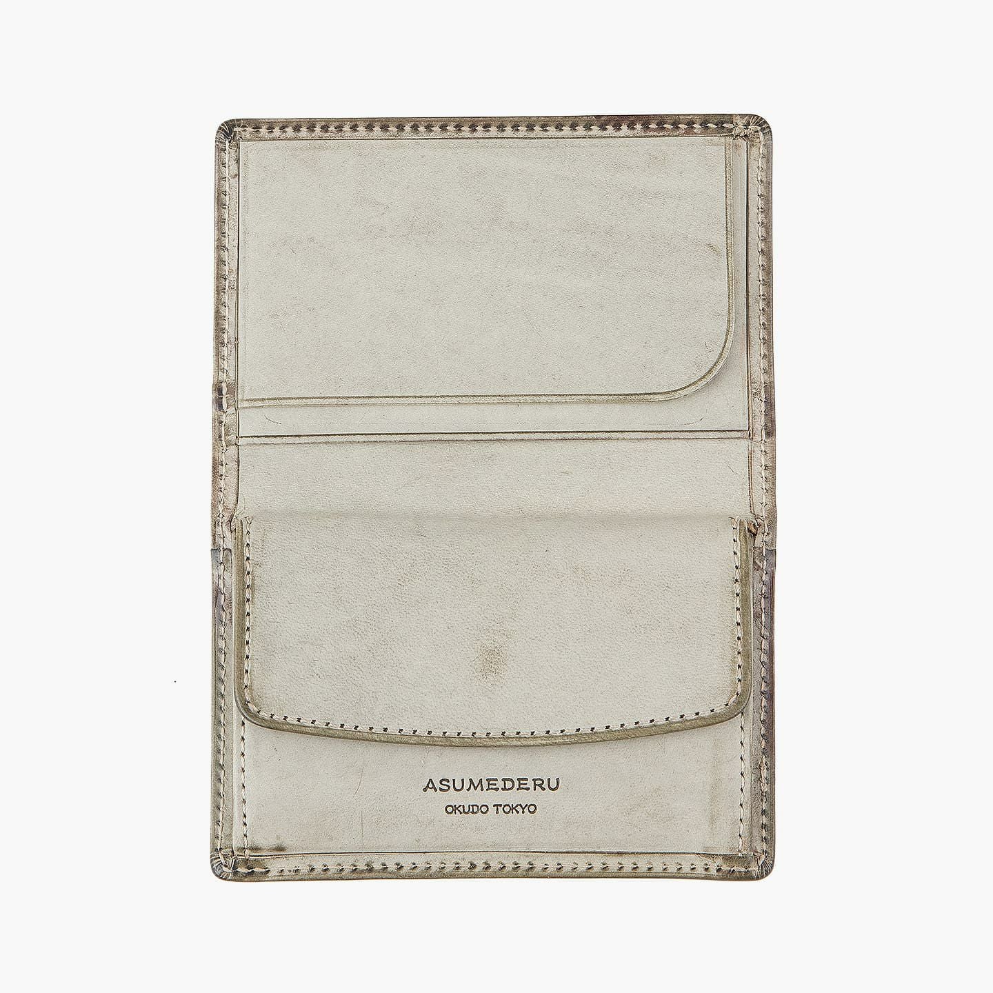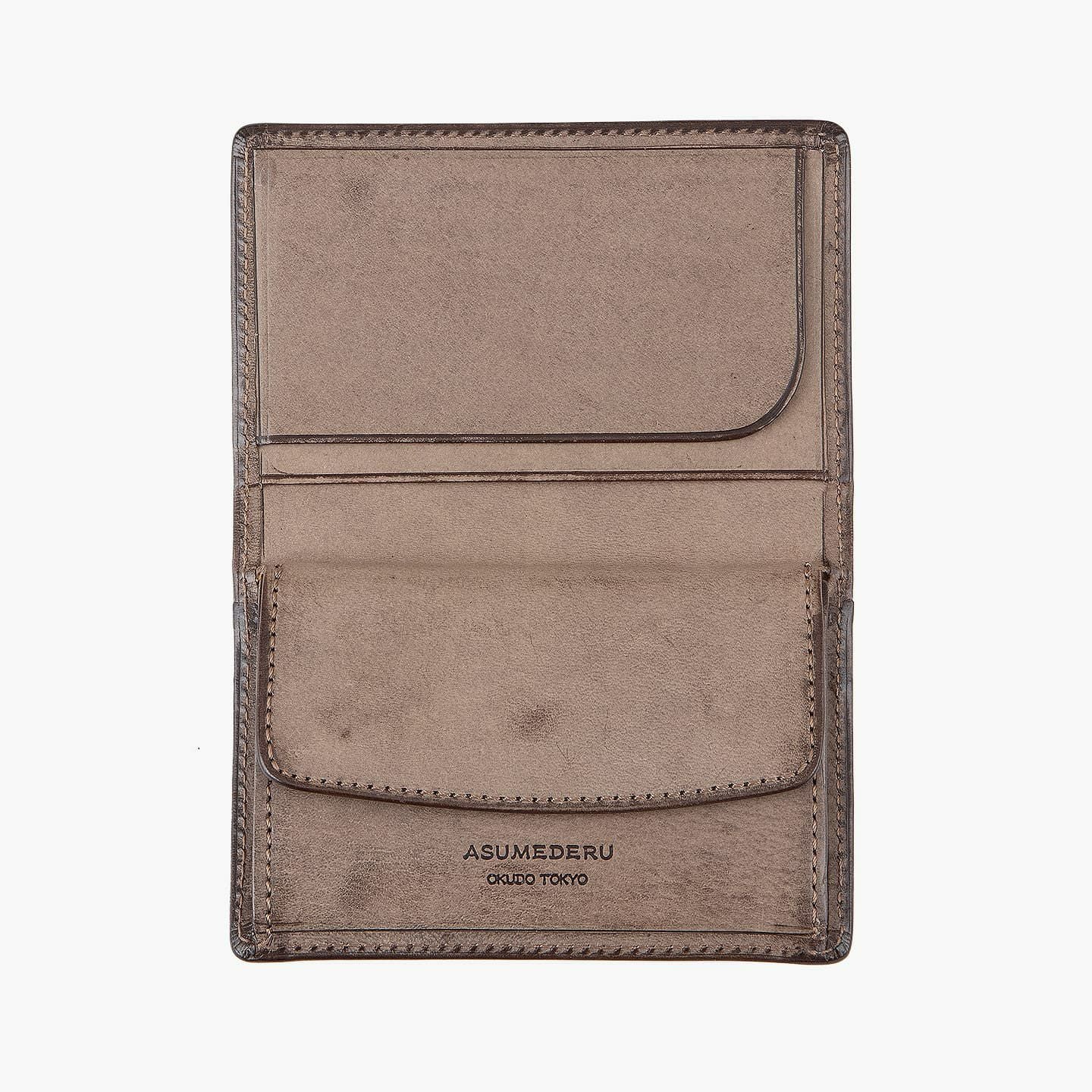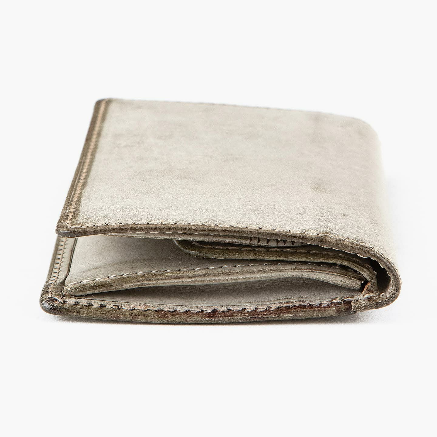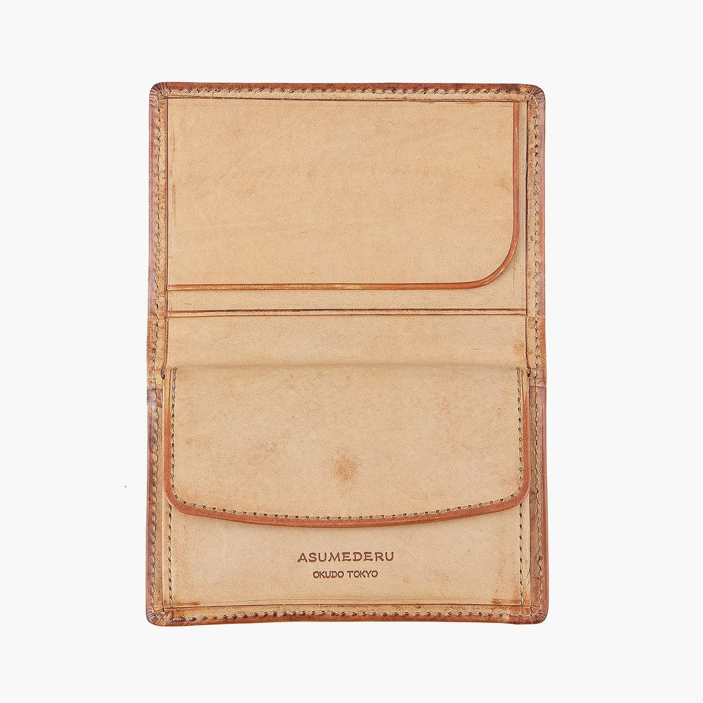 イタリア・トスカーナ地方サンタクローチェ地区のタンナー、イタルペル社製の「トゥクソン・ワックス」。繊維密度が高く丈夫なダブルショルダー(成牛の肩部)を用い、伝統的なバケッタ製法で作られたフルベジタブルタンニン鞣し牛革の表皮に、時間をかけてパラフィンワックスを垂らしながら仕上げています。バームクーヘンの作り方のように、ロールにして回しながら上からワックスを滴下していく技法で、回転させる加減により常温時に白くなるワックスが白い濃淡が生まれて、個性的な表情を創出。使用前の淡白い風合いと、使い込んで革色の浮き出てきた風合いが、劇的に変化する個性的な素材で、ワックスが革の内部に溶け込んで、革だけでは表現できない独特なツヤが魅力です。また、ダブルショルダーは首に近い部位でもあるので、“トラ目”と呼ばれる原皮のシワも味として残ることがあり、アイテムとして新たな楽しみ方も見つけられます。