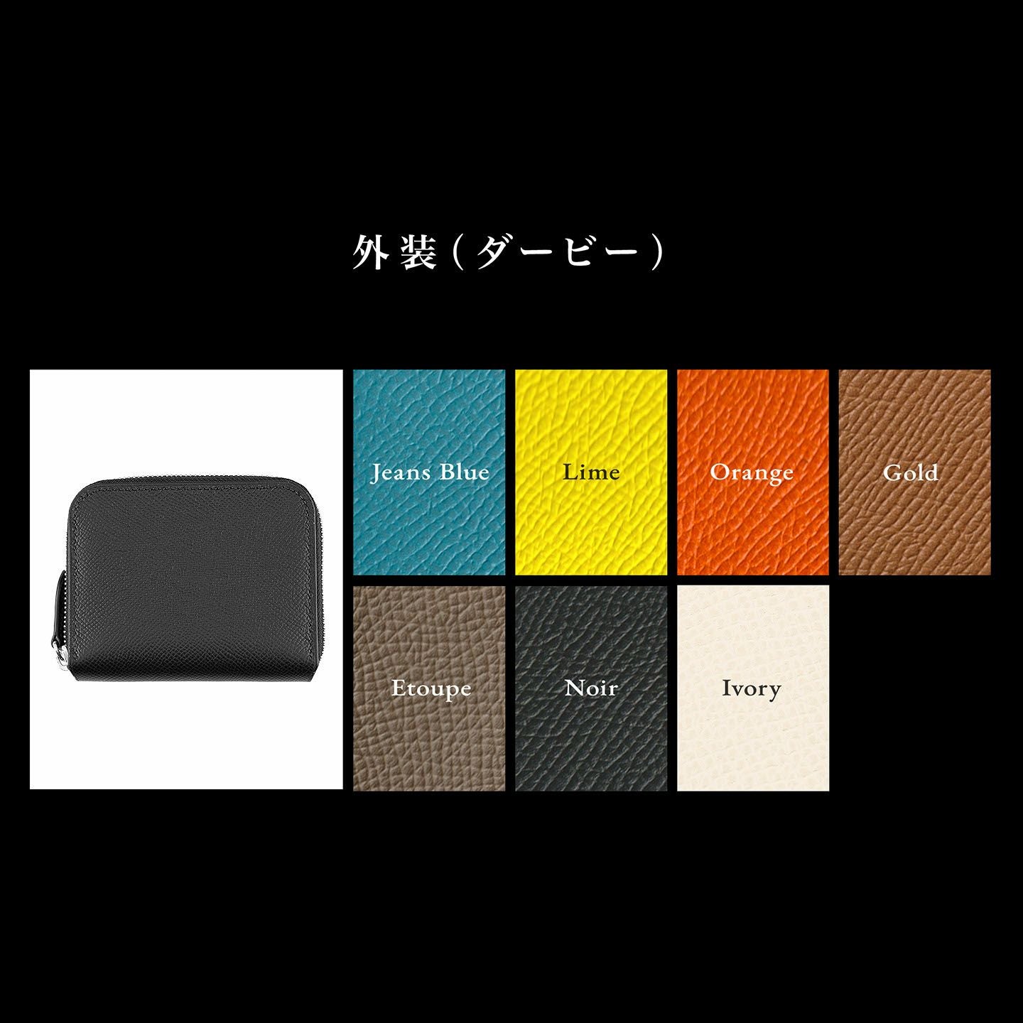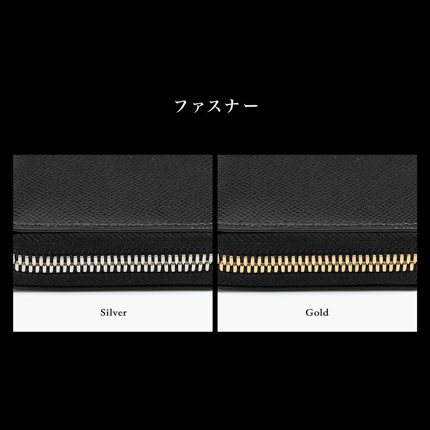 大きく開くマチで使いやすく、センターの仕切りの片側にはカードポケット1つを備え、頻繁に出し入れするカードの収納などに便利。その仕切りの両サイドに1つずつフリースペースが設けられ、紙幣(二つ折り)・小銭・レシートや計5つのカードポケットに収まり切らなかったカードなど、フレキシブルに使いこなせる設計になっています。外装・内装の「ダービー」は、それぞれ発色の良い7色からセレクトでき、日本の革小物の伝統技法「切り目磨き」のコバは、カラーオーダーの組み合わせによりブラックもしくは最適なカラーをブランドが選択。美しい総手縫いによる味わい深いステッチの糸色も、高級麻糸「MeiSi Superfine Linen Thread」の豊富な25色から選べます。さらに、ファスナーも、外装カラーと統一されたファスナーテープの色を想定しながら、Silver・Goldのいずれかからチョイス。多彩な色の組み合わせから自分で自由にコラーコーディネートでき、オリジナル品のようにセレクトオーダーできるのも魅力になっています。