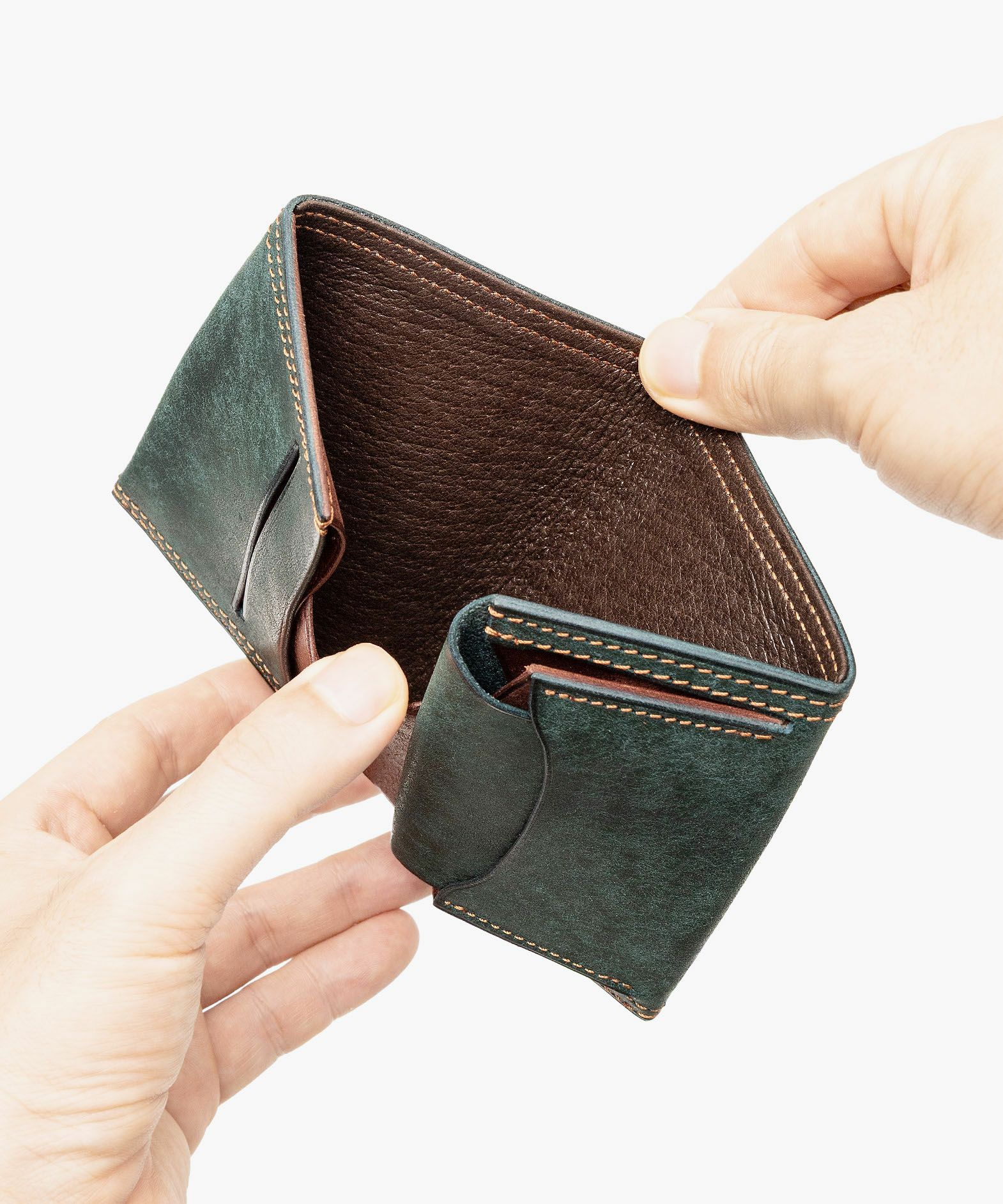 心と心を繋ぎ止められるような革製品を作り出していくために、革職人・栗本麻央が全工程をひとりで手作業により製作している、レザーブランド『Cobalt Leather Works』のハーフウォレット。和紙のような風合いから美しいツヤ肌へと経年変化していく「プエブロ」を、名称の如く“Kururi”(くるり)と包むように両サイドを折り込んだ独創的なデザインが、丸みを帯びた端部分と手のひらに収まるサイズ感とともに、いつまでも握っていたくなる心地よさを創出。独自設計による内装も特長的で、装飾・収納の配置にこだわった洒落感と、視認性・収納性にこだわった使用感が、一般的な二つ折りよりもコンパクトなサイズ感を実現しながら、唯一無二の魅力を奏でてくれる。