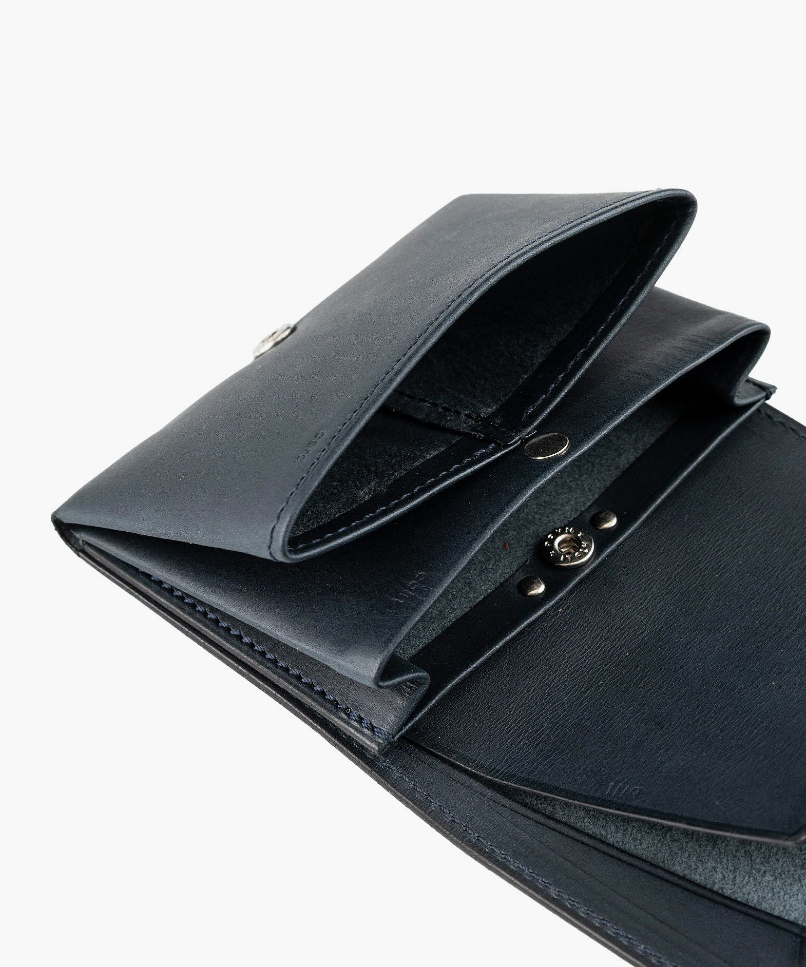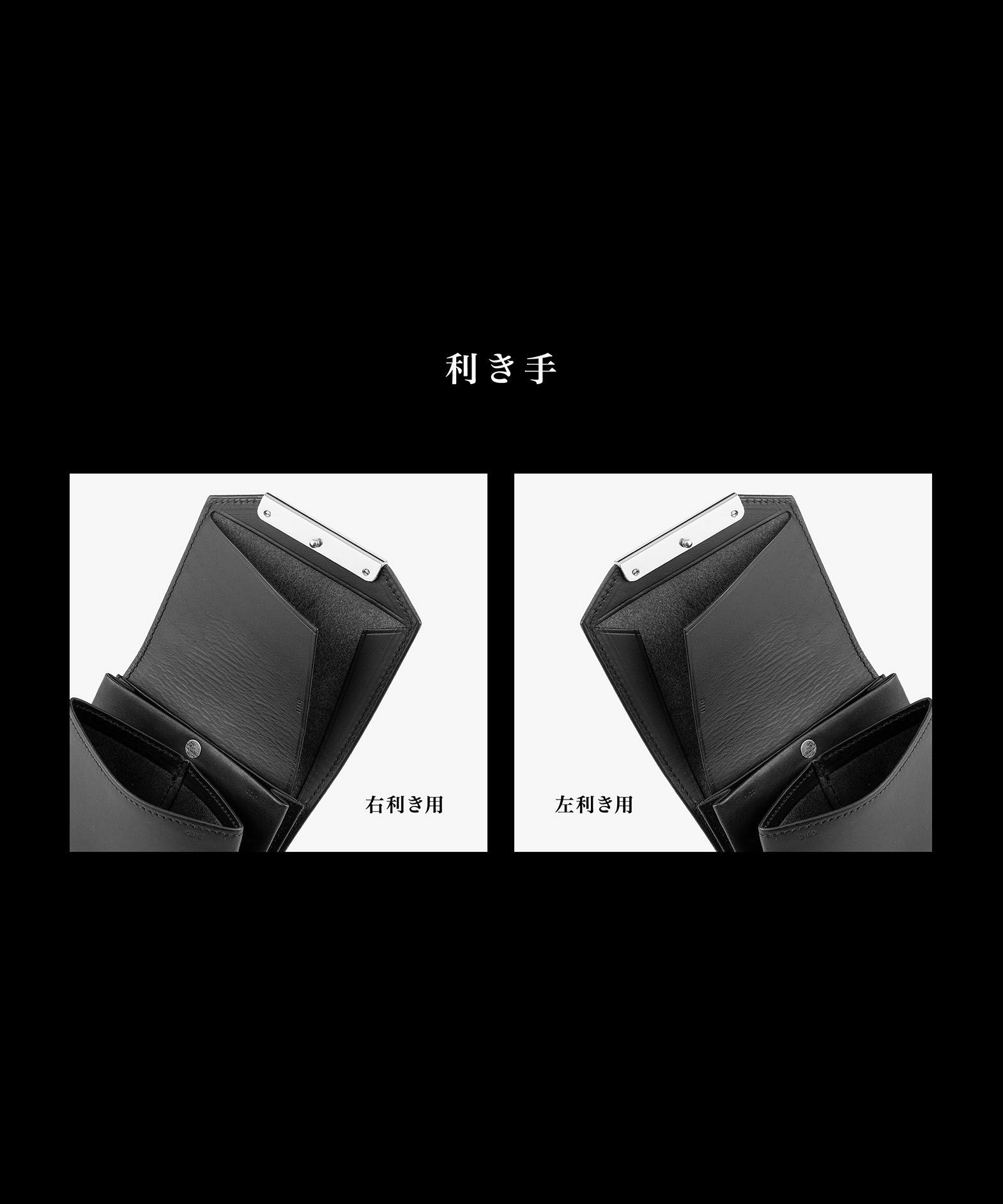 折らずに紙幣を札室へ入れられ、多くの小銭をコインポケットに収納できる、コンパクト財布“お札まっすぐ コインたっぷり 縁”。人気の高いイタリア・バダラッシカルロ社による、和紙のように表面を起毛させた風合いの「プエブロ」7色と、透明感があり滑らかで肌触りも良い「リスシオ」3色の、素材2種類&カラー計10色からセレクトオーダーでき、それぞれ異なる経年変化を楽しむことも。MLS別注仕様の上品なヘリ止めホック式の留め具は、Gold・Silverからチョイス。右利き用・左利き用のセレクトオーダーや、背面ポケットのオプション追加、bill・coin・cardの刻印など、使いやすさへの細やかな配慮も魅力的。カブセ角落としや内装設計が醸し出す、独創的なデザイン性が、大人のセンスを輝かせてくれる。