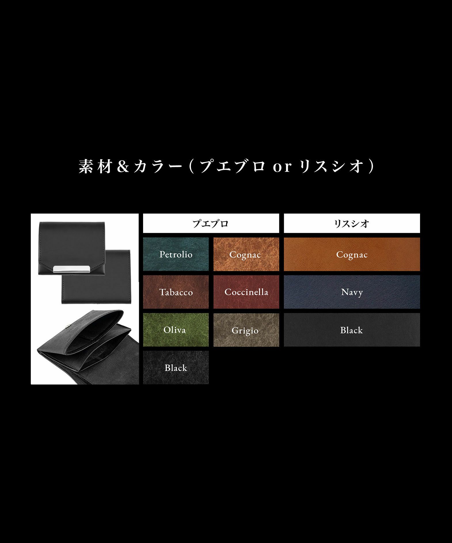 紙幣を封筒に入れる感覚で、札室のスリットへ紙幣を折らずに収納できる、コンパクト財布“お札まっすぐ 縁”。素材&カラーは、イタリアンレザーで人気の高いバダラッシカルロ社による、和紙のような独特の風合いの「プエブロ」7色と、滑らかな肌触りで透明感のある「リスシオ」3色から、自分の好みでセレクトオーダーでき、それぞれ異なる経年変化を楽しむことも。MLS別注仕様の上品なヘリ止めホック式の留め具は、Gold・Silverから選べるのをはじめ、右利き用・左利き用の利き手、背面ポケットのオプション追加などをセレクトできるのも魅力。さりげないbill・coin・cardの刻印や、洗練されたカブセの角落とし、使いやすい独自設計の内装など、独創性に満ちた佇まいが、大人の洒落感をもたらしてくれる。