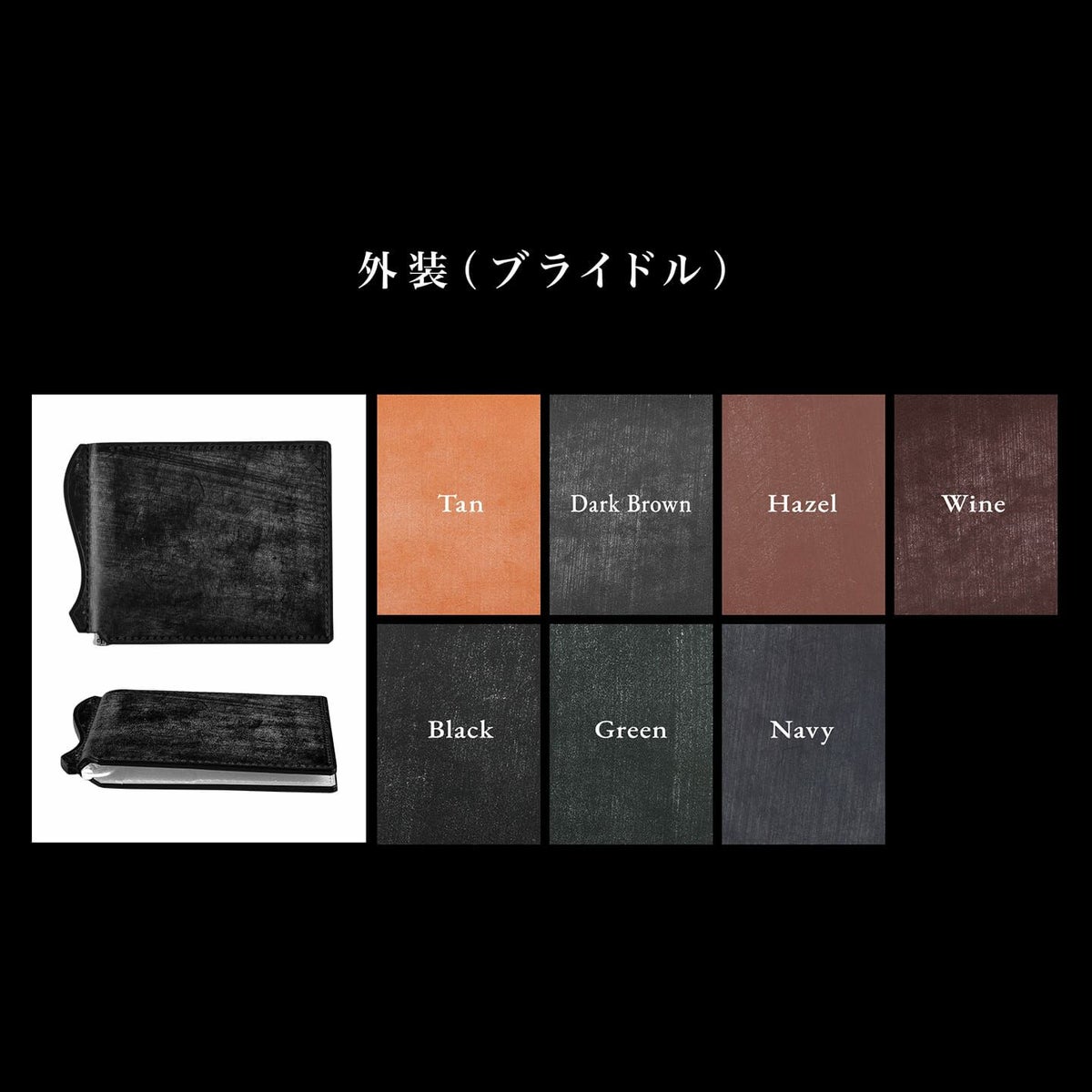 アニリン染めコードバン & ブライドル マネークリップ