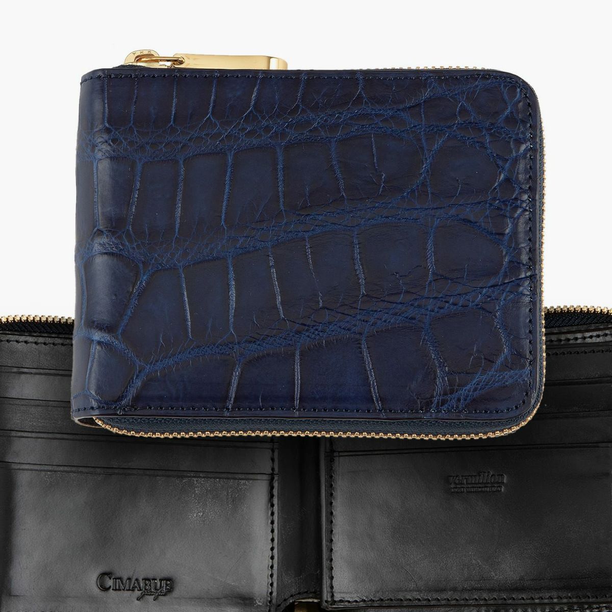 藍染めクロコダイル ラウンドジップ二つ折り財布